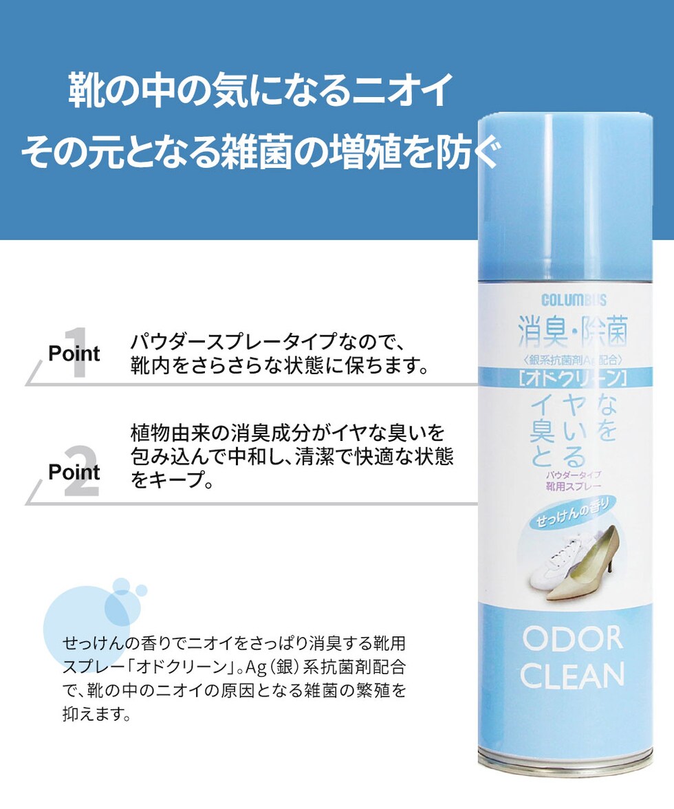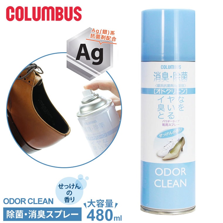 コロンブス 消臭スプレー パウダー オドクリーン 靴用 除菌 抗菌 Ag 銀系 靴 ブーツ 蒸れる 大容量 せっけんの香り 大容量 480mL 日本製