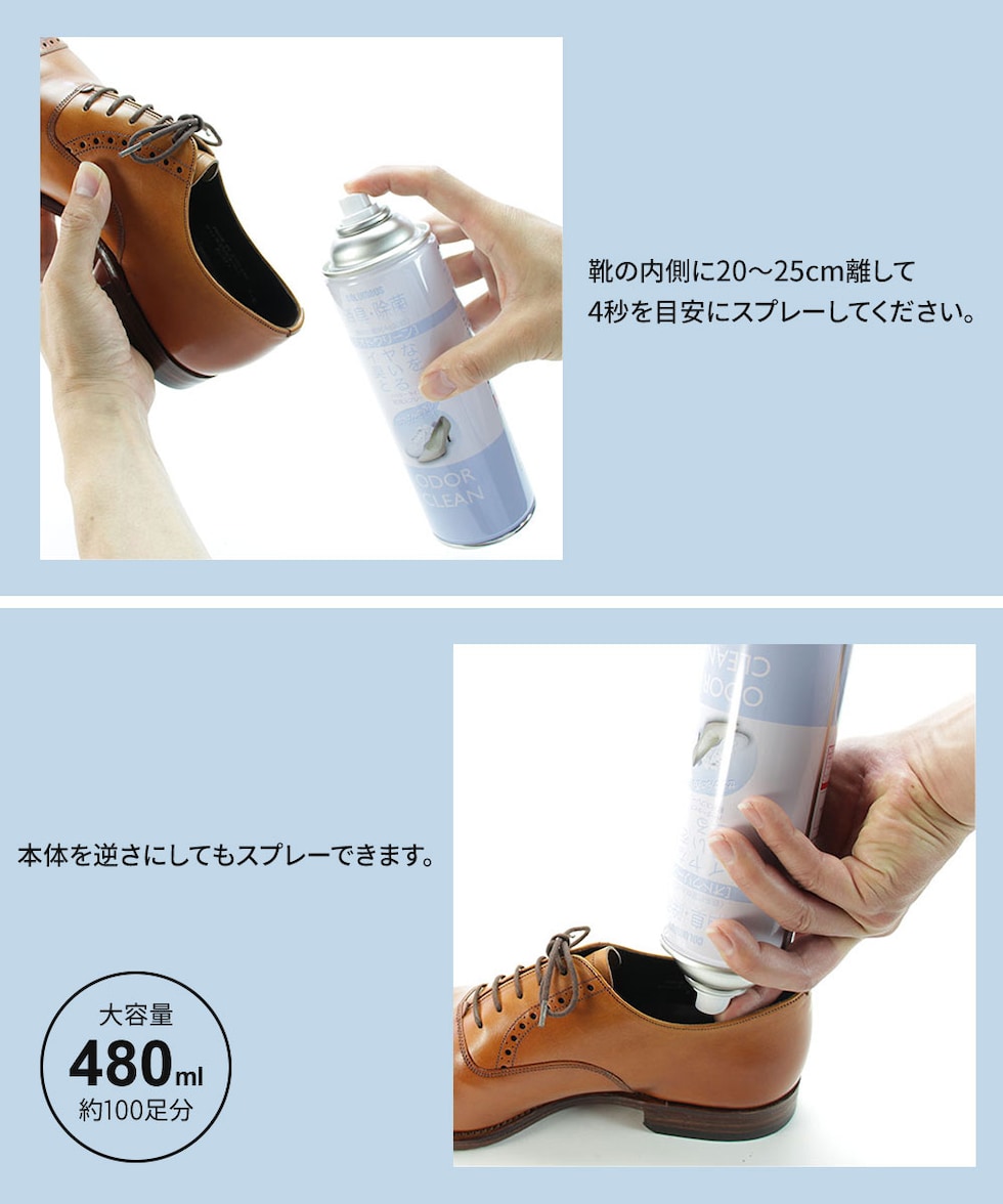 1本あたり約100足分使用可能な大容量タイプで、ブーツやスニーカーにもおすすめです。