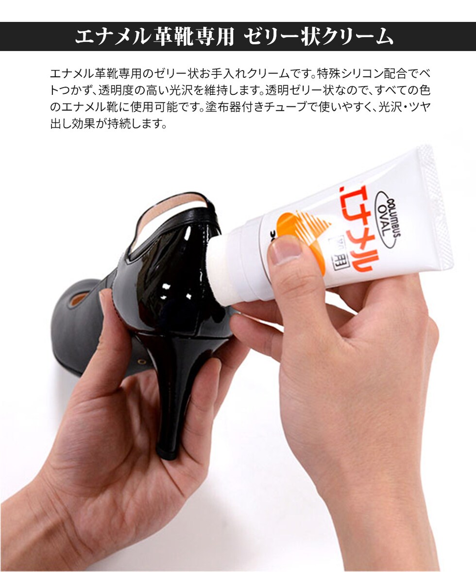 エナメル革靴専用のゼリー状お手入れクリームです。