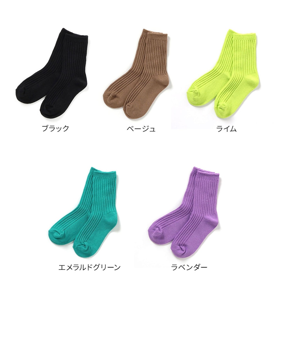 ソックス キッズ クルー丈 1P 靴下 キッズ ネオンカラー 無地 カラー ビビット カラフル シンプル 青 リブ p.premier P254034
