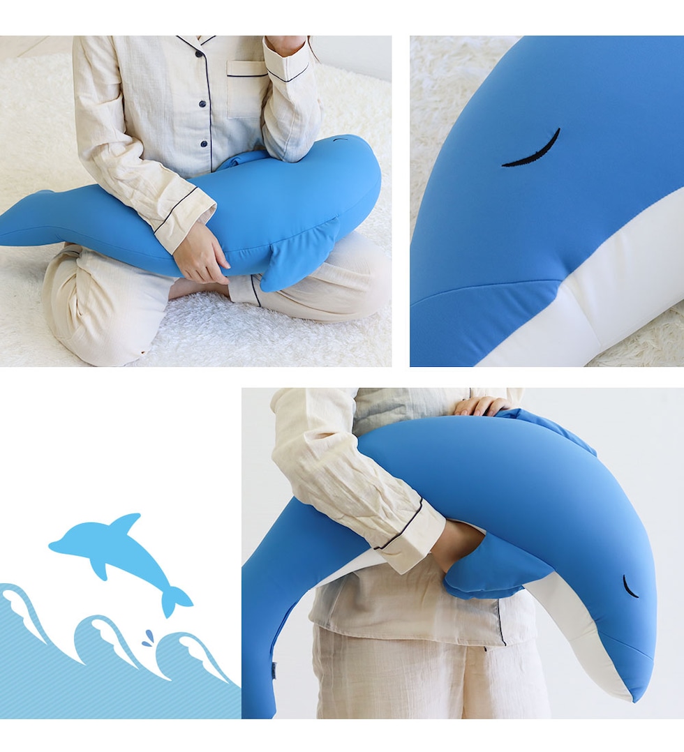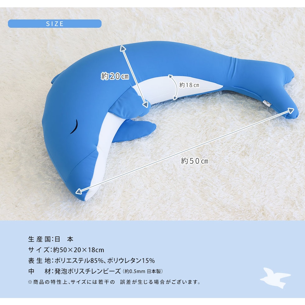抱き枕 ぬいぐるみ 大きい ビーズクッション 大きめ かわいい イルカ クッション インテリア 腰当て 背あて まくら もちもち マイクロビーズクッション 抱きまくら 癒し 横向き寝 子供 0.5mmビーズ 極小ビーズ 日本製 青 ブルー PAB-1 送料無料