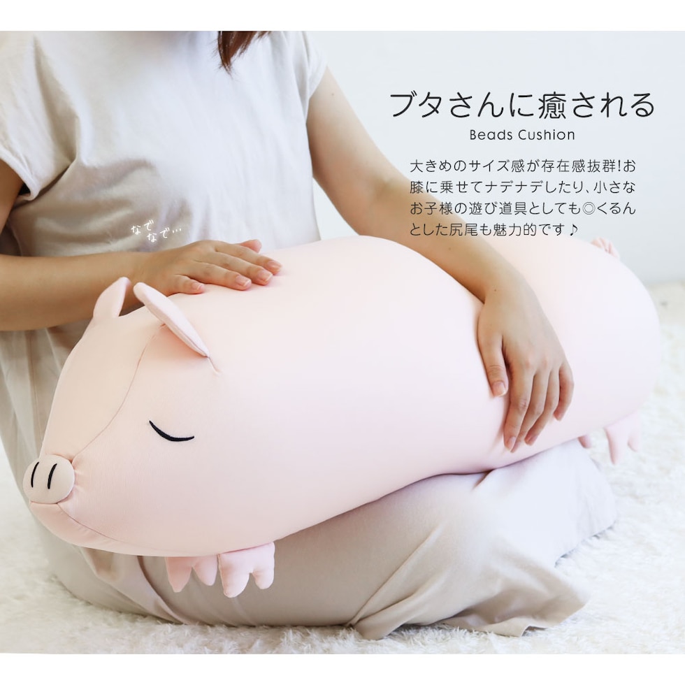 抱き枕 ぬいぐるみ 大きい ビーズクッション 大きめ かわいい ブタ クッション インテリア 腰当て 背あて まくら もちもち マイクロビーズクッション 抱きまくら 癒し 横向き寝 子供 0.5mmビーズ 極小ビーズ 日本製 ピンク PAB-2 送料無料