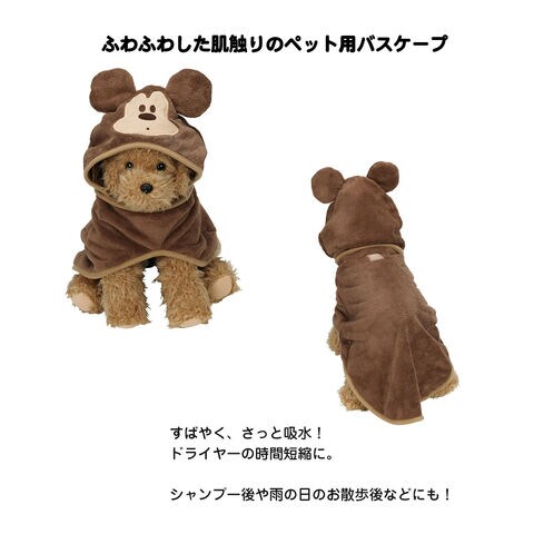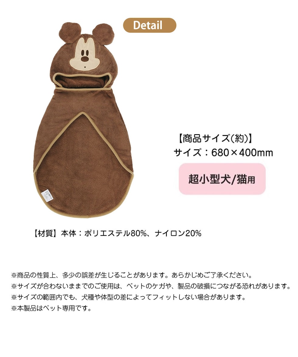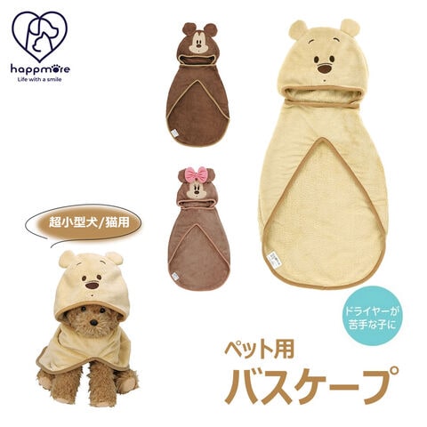 ペット用 バスローブ 着るタオル 吸水 超小型犬 猫 犬 シャンプー お風呂 冷え対策 ミッキー ミニー プーさん ブラウン ベージュ PBCP1