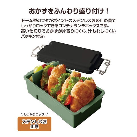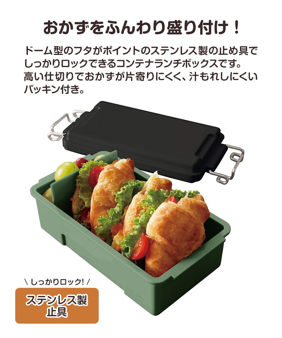 ステンレス製の止め具でしっかりロックできるコンテナランチボックスです。