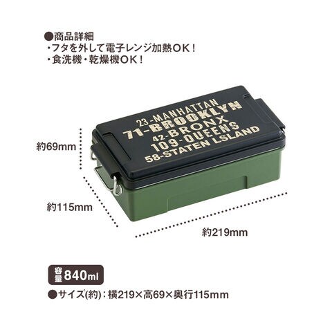 弁当箱 840ml メンズ 1段 ふわっとコンテナランチボックス 高校生 大人 大きめ シンプル おしゃれ ブラック 黒 カーキグリーン PCTN9