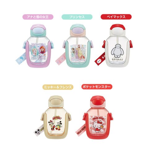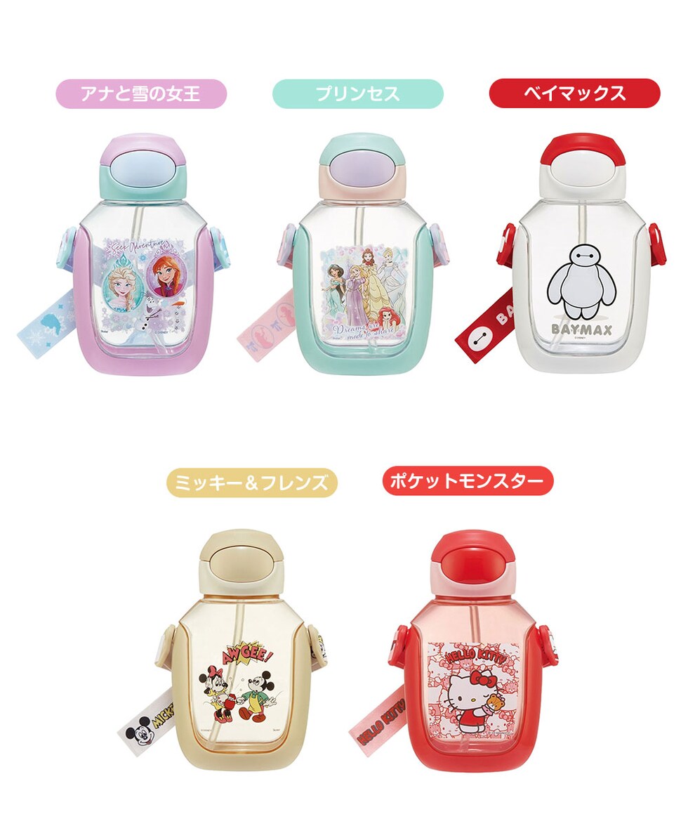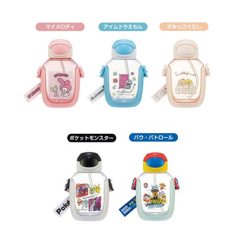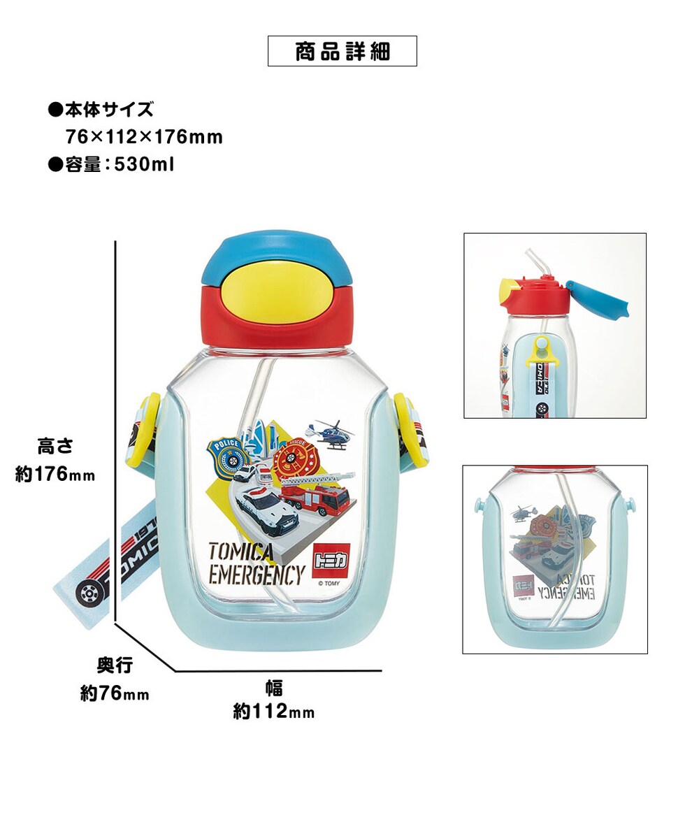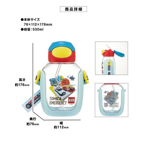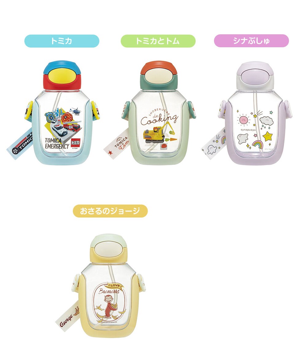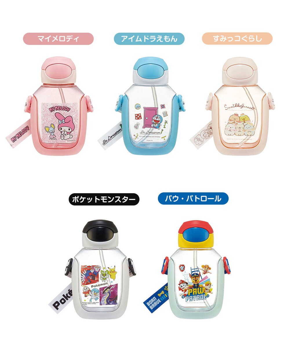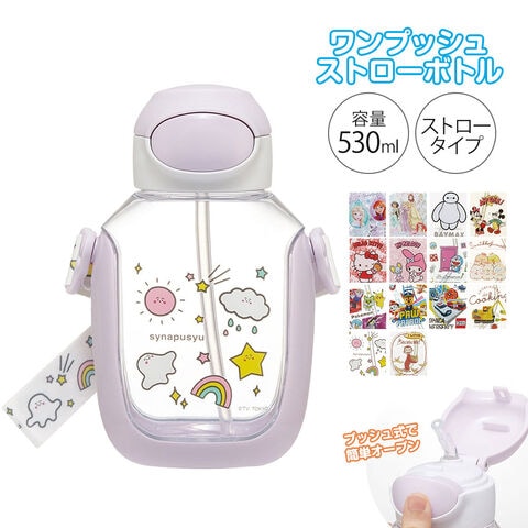 水筒 キッズ 530ml ワンプッシュ クリアボトル ストロー飲み ショルダー ストラップ 名前シール 男の子 女の子 保育園 幼稚園 常温 幼児 こども PDSH6DX