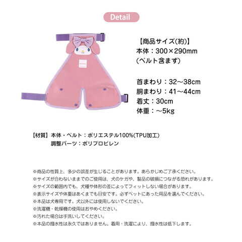 泥よけ エプロン 犬用 レインコート ドッグウェア かわいい 女の子 犬のカッパ 雨合羽 撥水 梅雨 散歩 ペット用品 マイメロディ ピンク PEP1