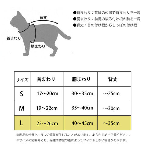 ※サイズの範囲内でも、猫種や体型の差によってフィットしない場合があります。