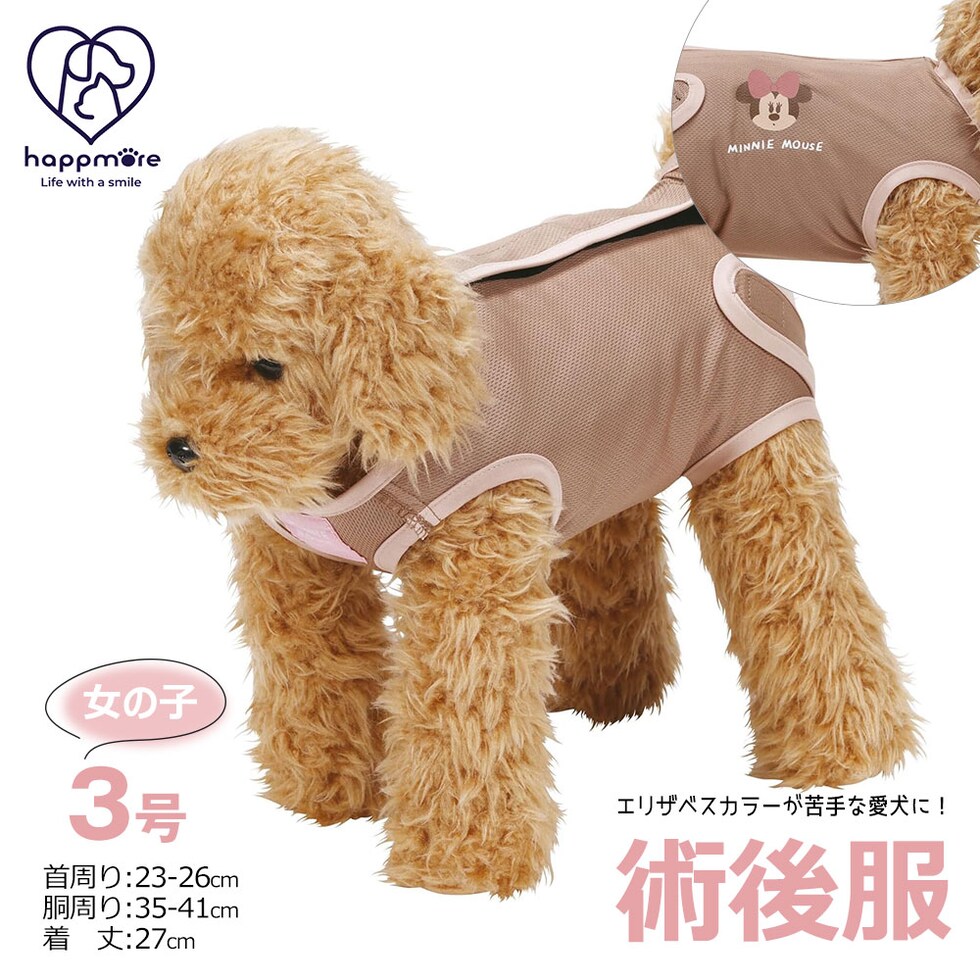 ペット用 術後服 女の子 3号 小型犬 ブラウン メス 雌 抗菌 消臭 手術 ウェア 着せやすい 傷なめ 防止 傷口 保護 ミニーマウス PETCF1