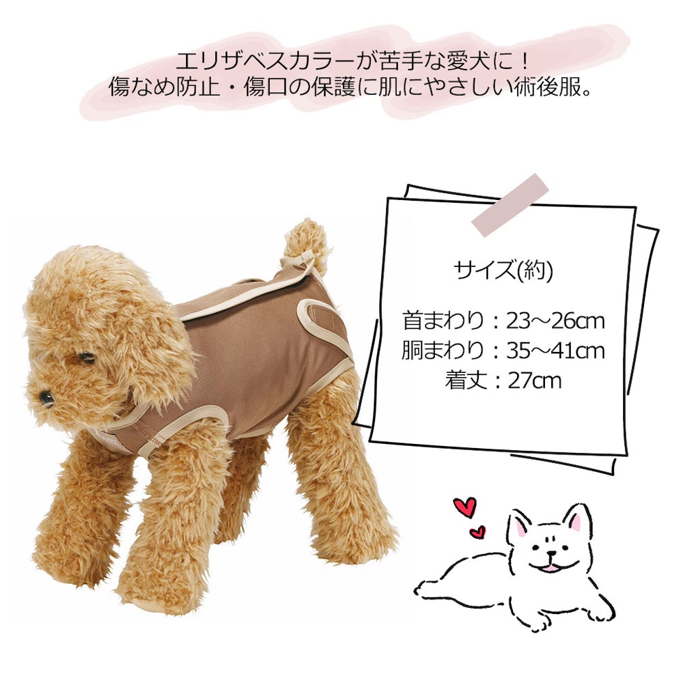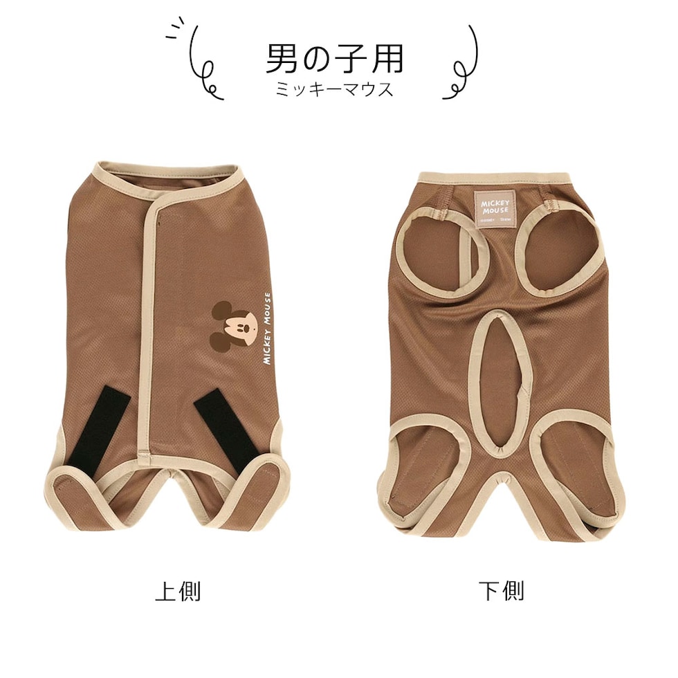 ペット用 術後服 男の子 3号 小型犬 ブラウン オス 雄 抗菌 消臭 手術 ウェア 着せやすい 傷なめ 防止 傷口 保護 ミッキー PETCM1