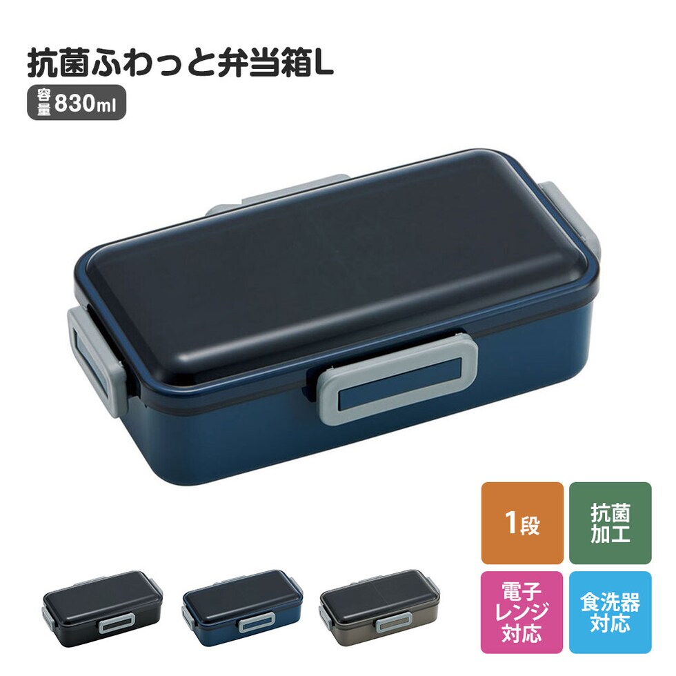 弁当箱 830ml 抗菌 メンズ 電子レンジ対応 スリムタイプ 1段 中学生 高校生 男性 大人 ブラック 黒 グレー ネイビー PFLB8AGのレビュー