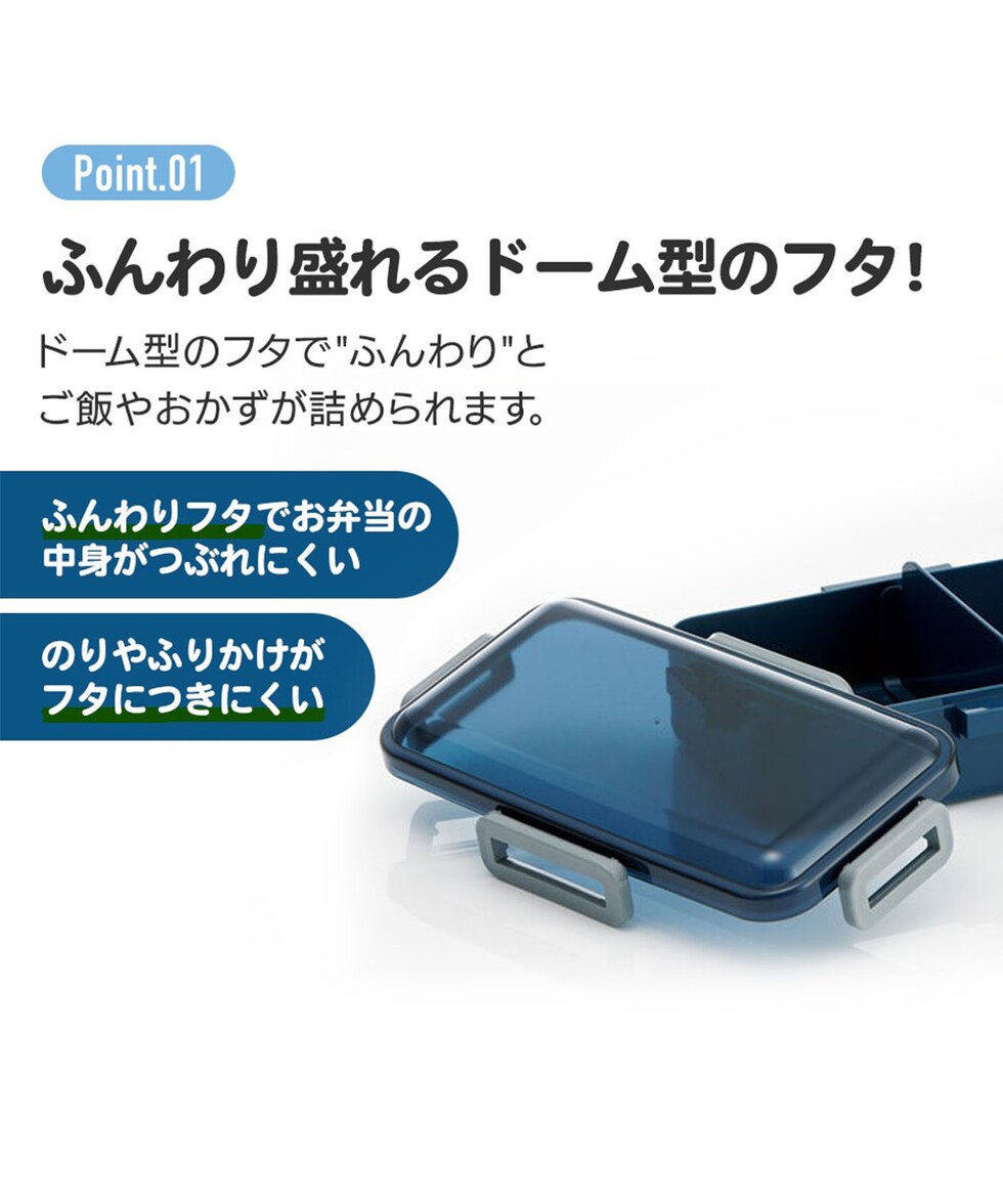 ドーム型のフタで、"ふんわり"とご飯やおかずが詰められる。
