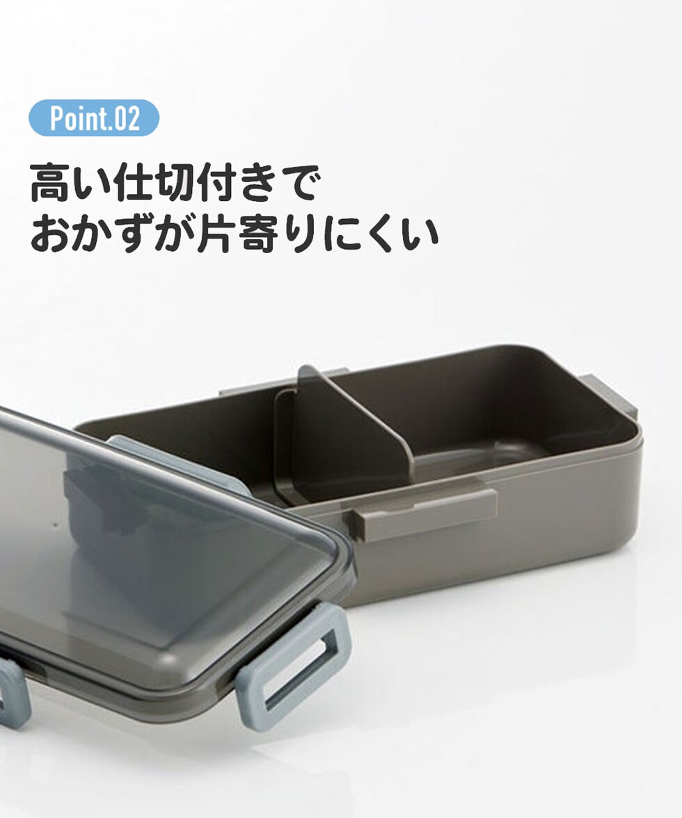高い仕切付きでおかずが片寄りにくい。