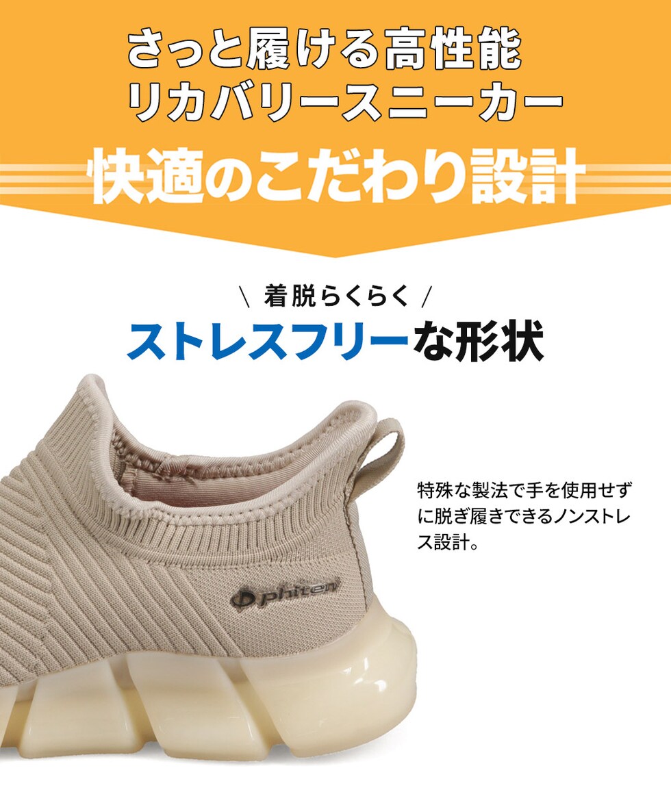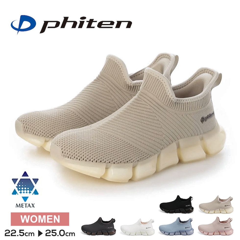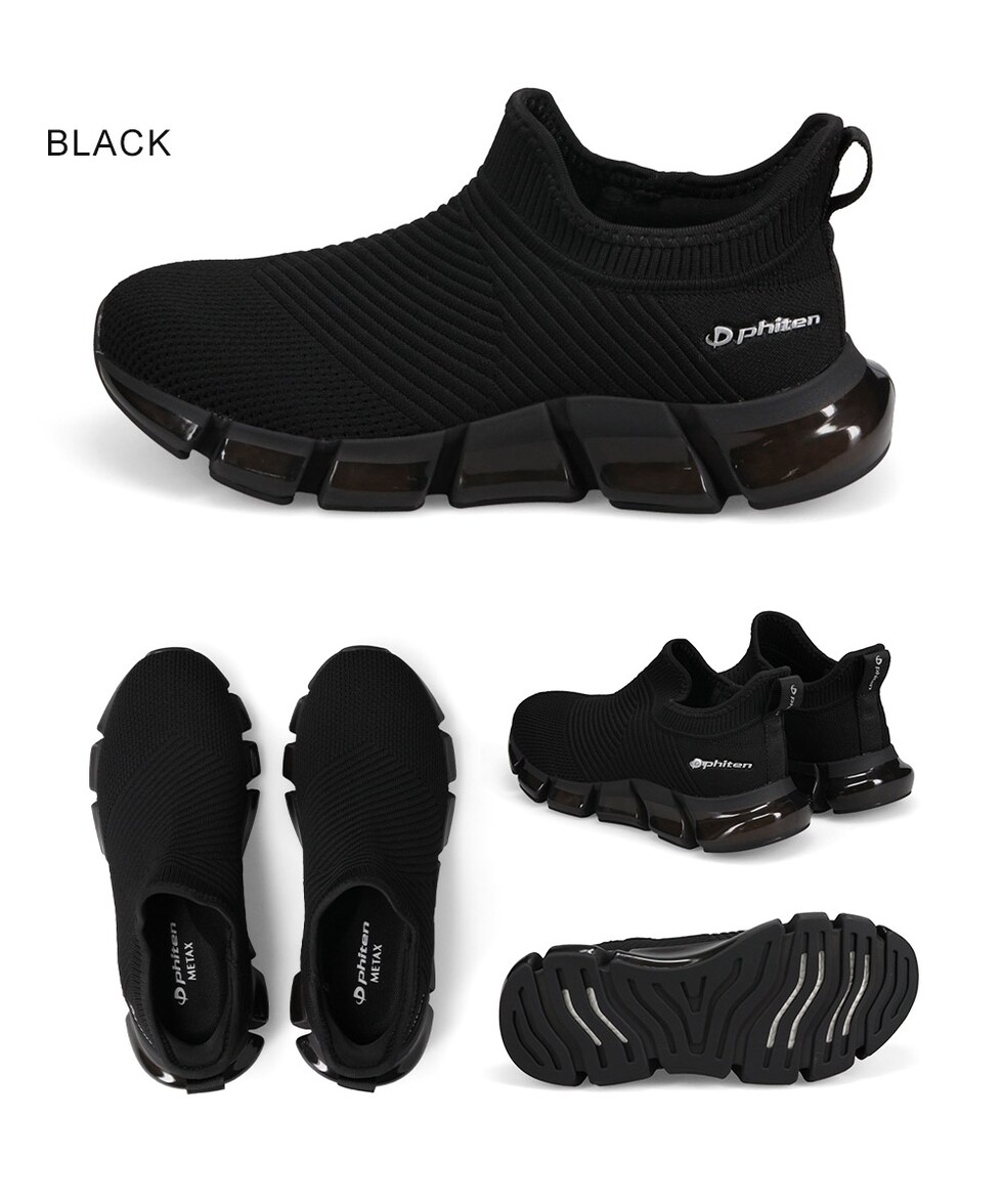 ファイテン スニーカー レディース リカバリー リラックス 靴 ウォーキングシューズ メタックス 軽量 ハンズフリー 黒 phiten PHL-004