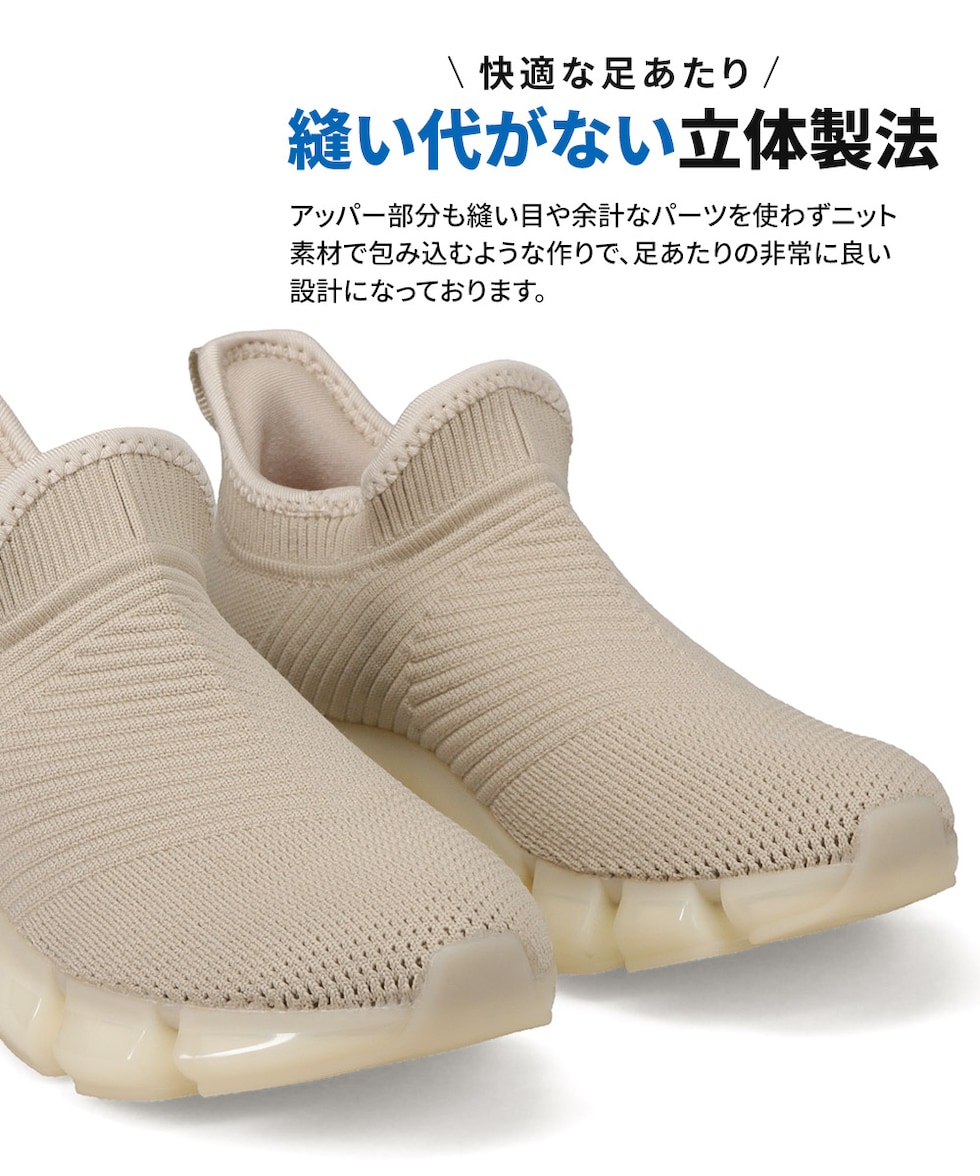 アッパー部分も縫い目や余計なパーツを使わずニット素材で包み込むような作りで、足あたりの非常に良い設計になっております。
