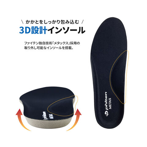 ファイテン独自技術「メタックス」採用の取り外し可能なインソールを搭載。