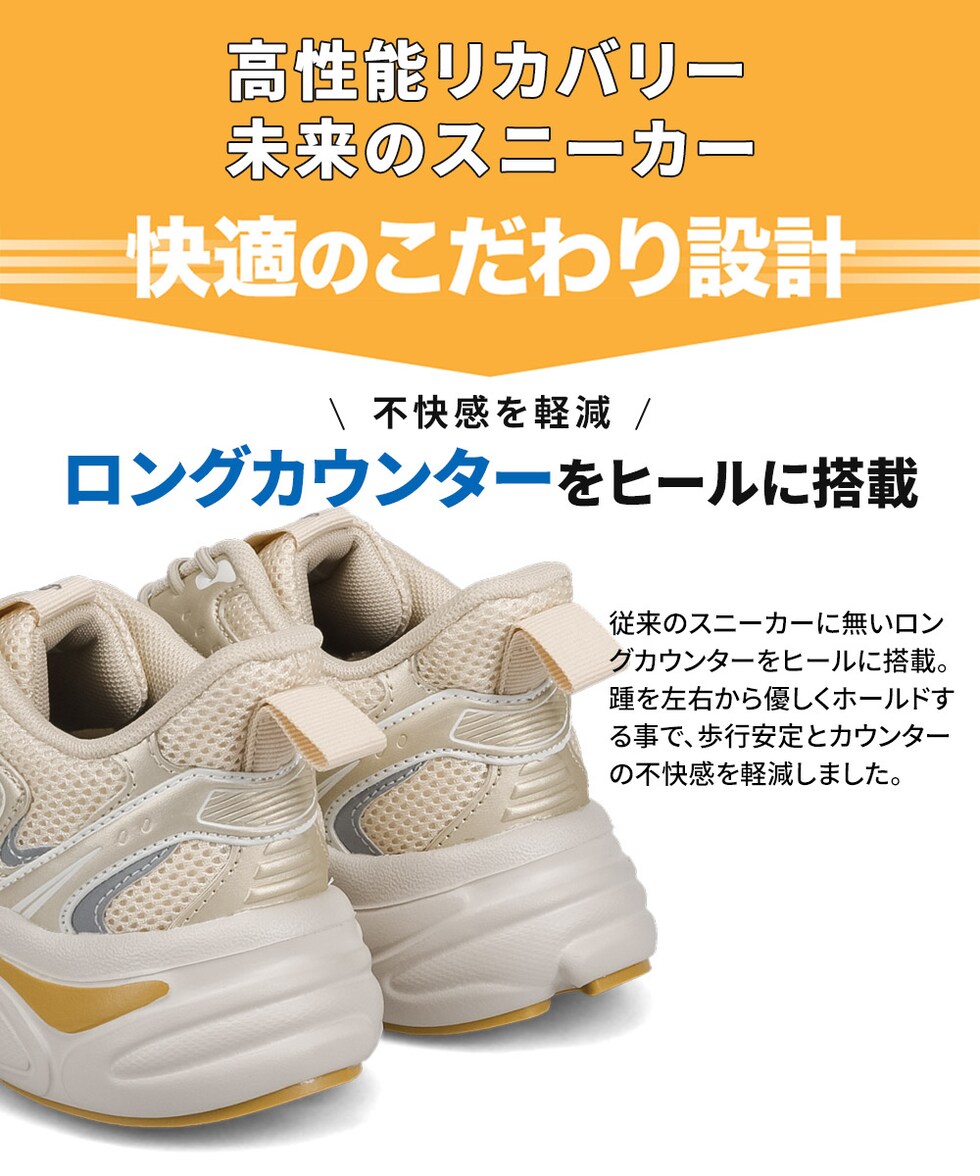 従来のスニーカーに無いロングカウンターをヒールに搭載。