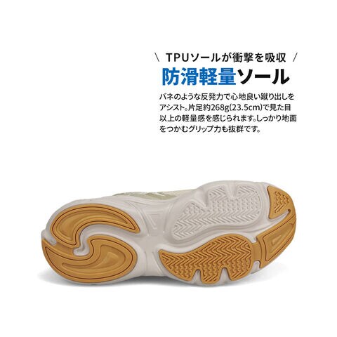 TPUソールが衝撃を吸収。バネのような反発力で心地良い蹴り出しをアシスト。