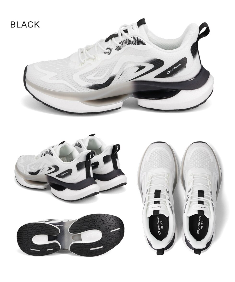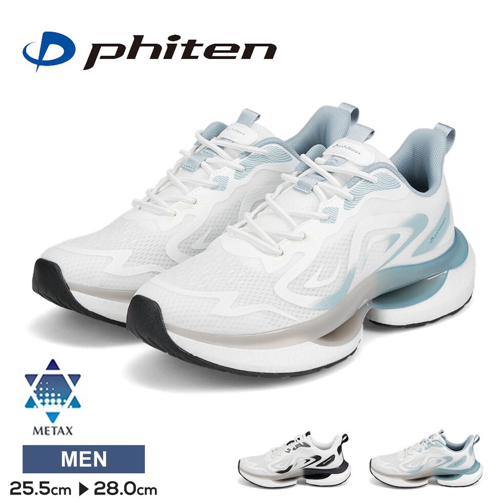 ファイテン スニーカー メンズ リカバリー 靴 ウォーキングシューズ 疲れにくい メタックス 高機能 通気性 ゴム紐 黒 phiten PHM-010