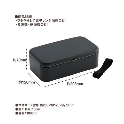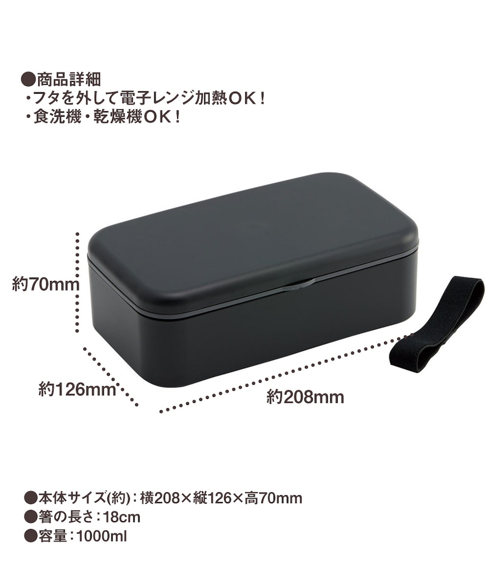 弁当箱 箸付き 抗菌 1段 1000ml 仕切り付き 食洗機対応 ランチボックス 電子レンジ 中学生 高校生 メンズ レディース ベルト付き 大人 PLB10HB