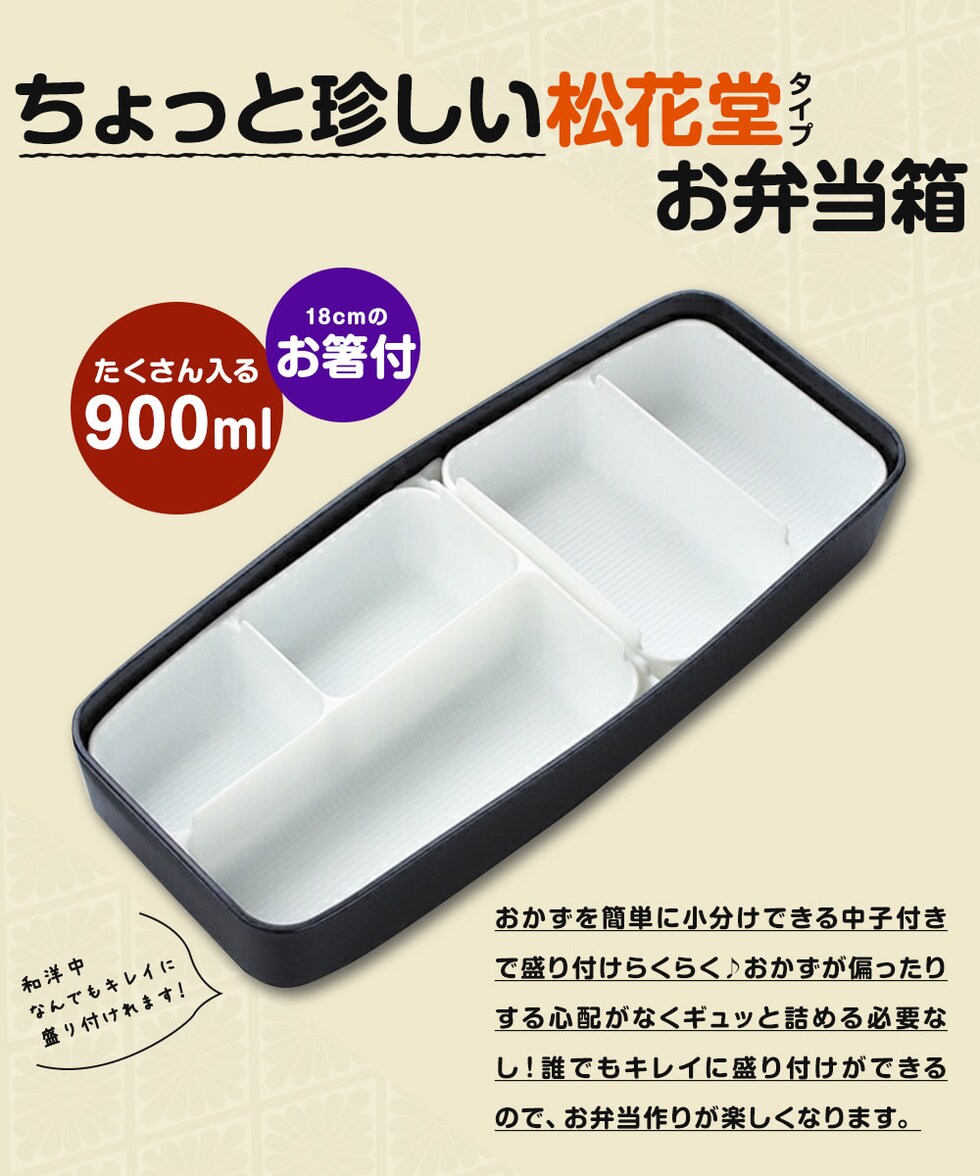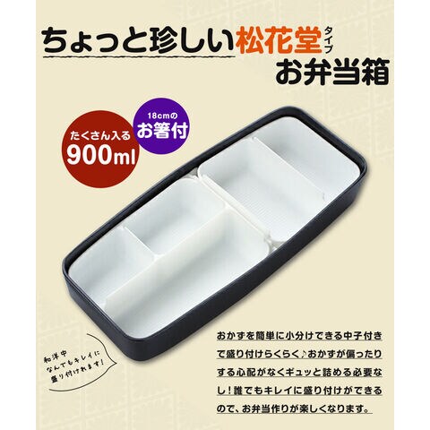 弁当箱 箸付き 2段 900ml 中子付き 松花堂 大き目 電子レンジ 男性 女性 メンズ レディース 大人 黒 ブラック POW5S