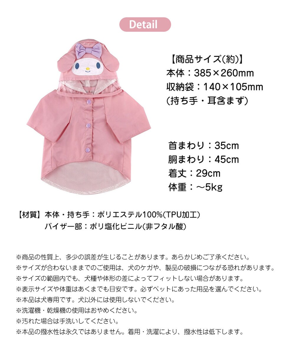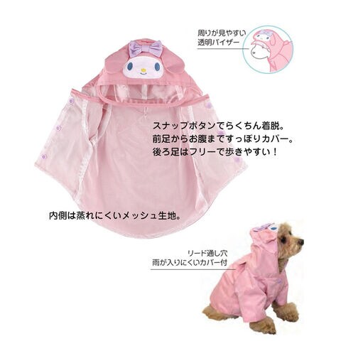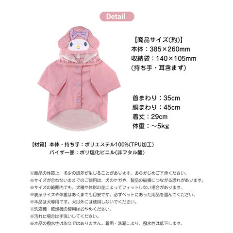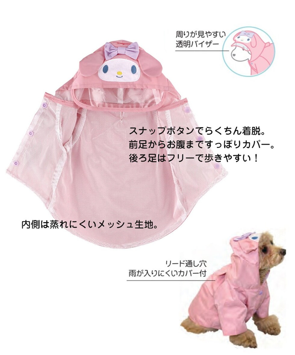 犬 レインコート 超小型犬用 フード付き ドッグウェア 犬の服 合羽 雨カッパ 梅雨 散歩 ペット用品 マイメロディ ピンク PRAC1