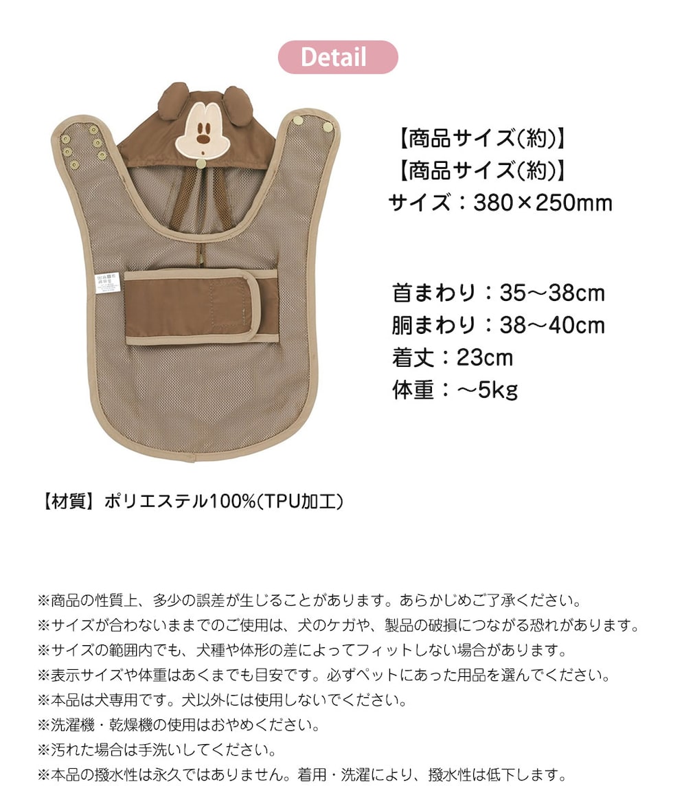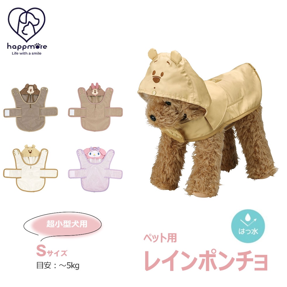 犬 レインポンチョ 超小型犬用 フード付き ドッグウェア カッパ 散歩 ペット用品 マイメロディ ミッキー プーさん ピンク ブラウン PRAPO1