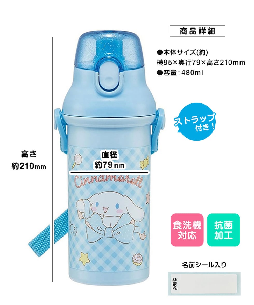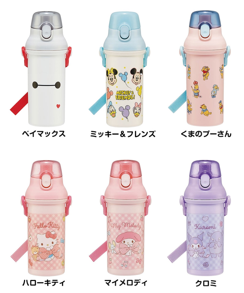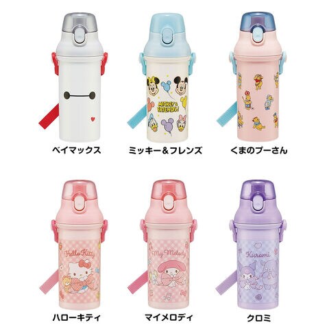 水筒 キッズ 480ml 抗菌 直飲み ワンタッチ ベルト付 子供 男の子 女の子 保育園 幼稚園 ディズニー サンリオ PSB5SANAG