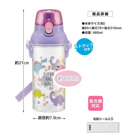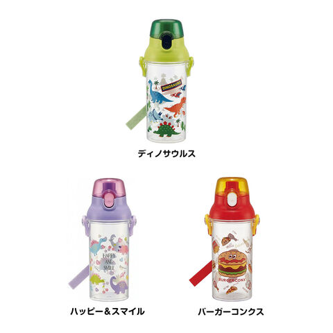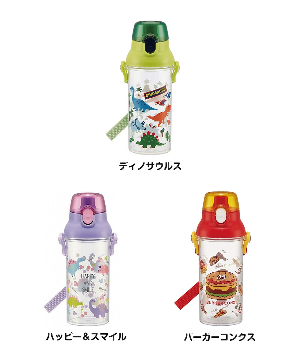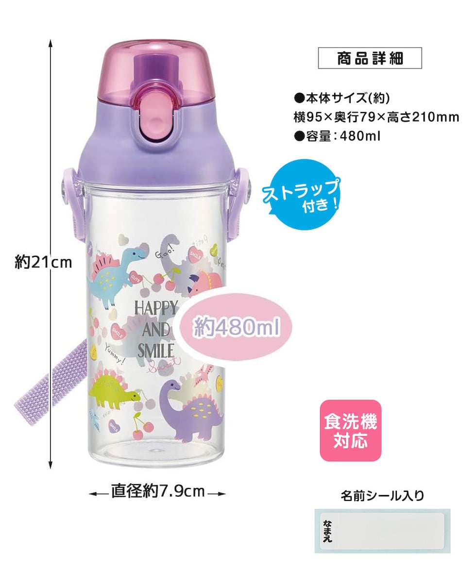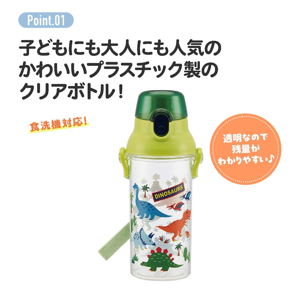 水筒 キッズ 480ml 直飲み クリア ワンタッチ 食洗機対応 ベルト付 名前シール 子供 子ども 男の子 女の子 恐竜 PSB5TR