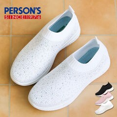ニットスニーカー レディース 黒 通気性 メッシュ ローカット アッパーニット スリッポン パーソンズ PERSON'S ブラック ベージュ 5817