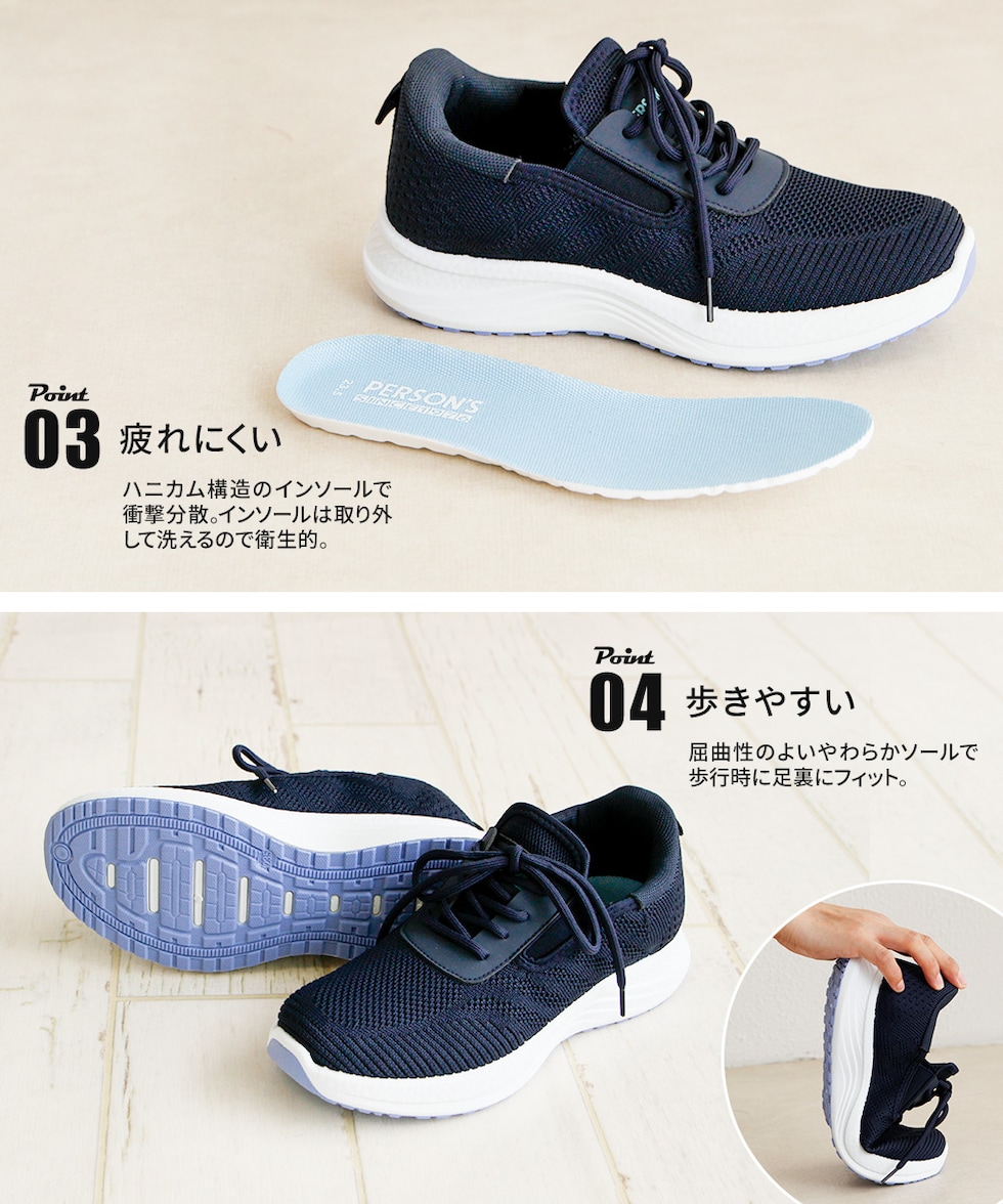 パーソンズ レディース スニーカー スリッポン ハンズフリー 立ったまま履ける 通気性 メッシュ ローカット 軽い 運動 靴 シューズ 履きやすい 5829 PERSON'S
