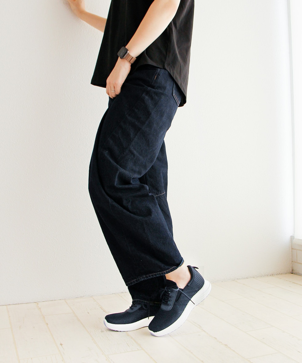 シューレースタイプながら、履き口両サイドスリットに伸縮性のある生地を使用、スッとはける。