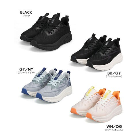 [カラー]:BLACK(ブラック)、BK/GY(ブラック/グレー)、GY/NV(グレー/ネイビー)、WH/OG(ホワイト/オレンジ)