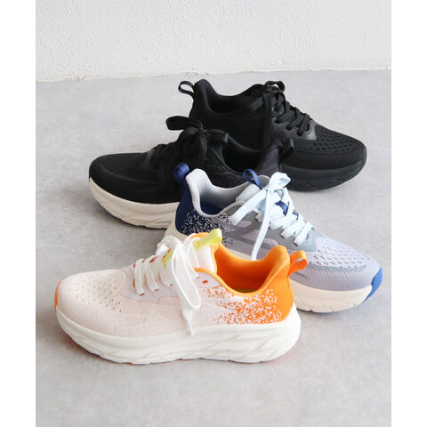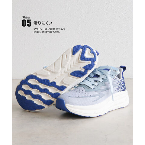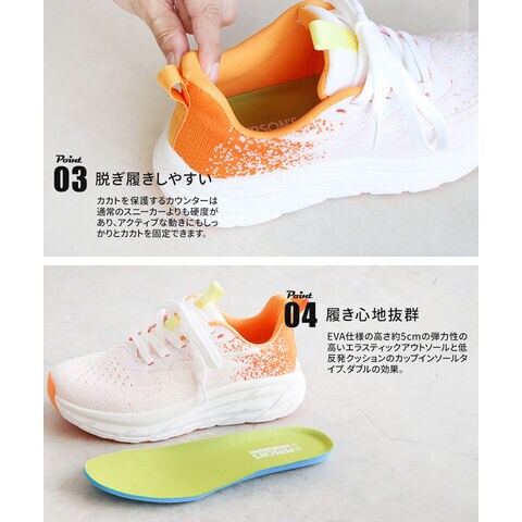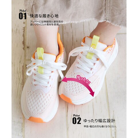 1.アッパーには伸縮性と通気性の良いフライニット素材を使用し快適な履き心地。