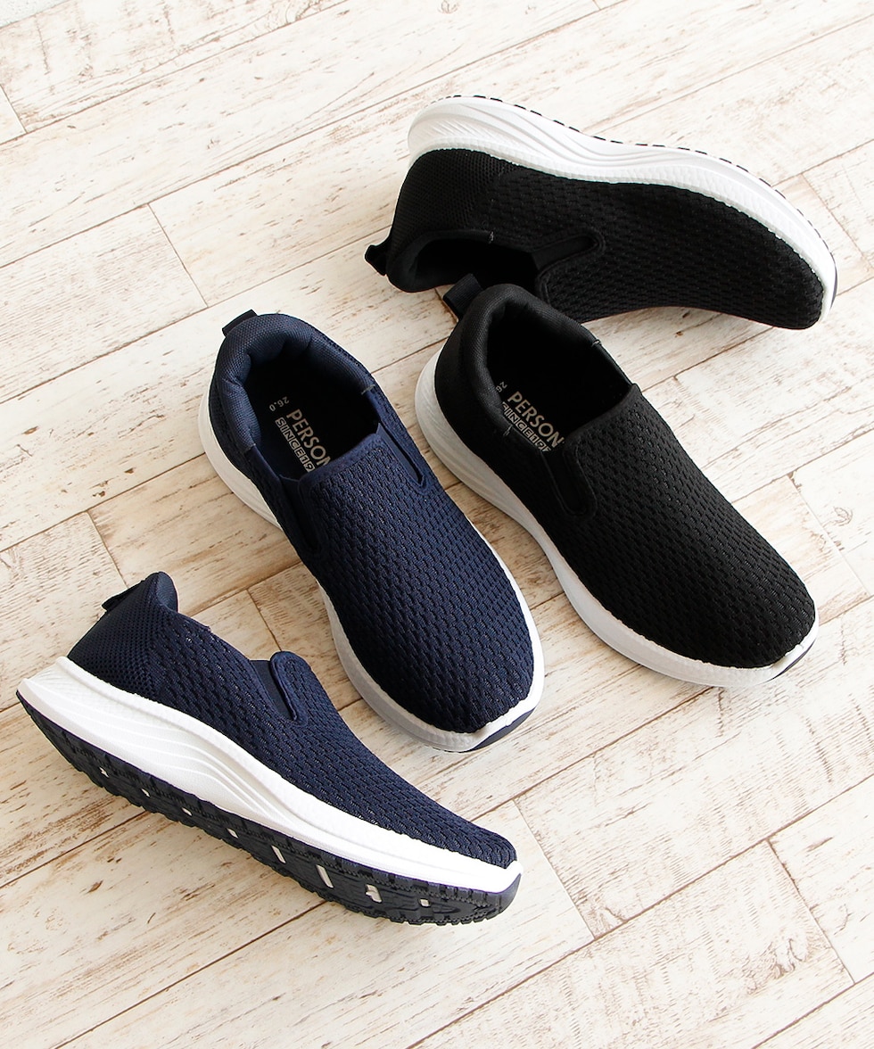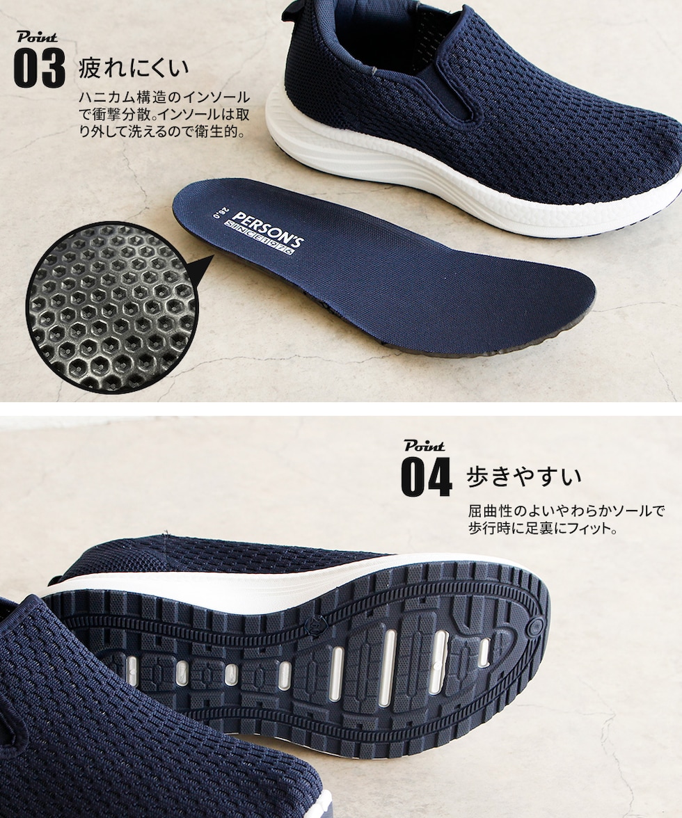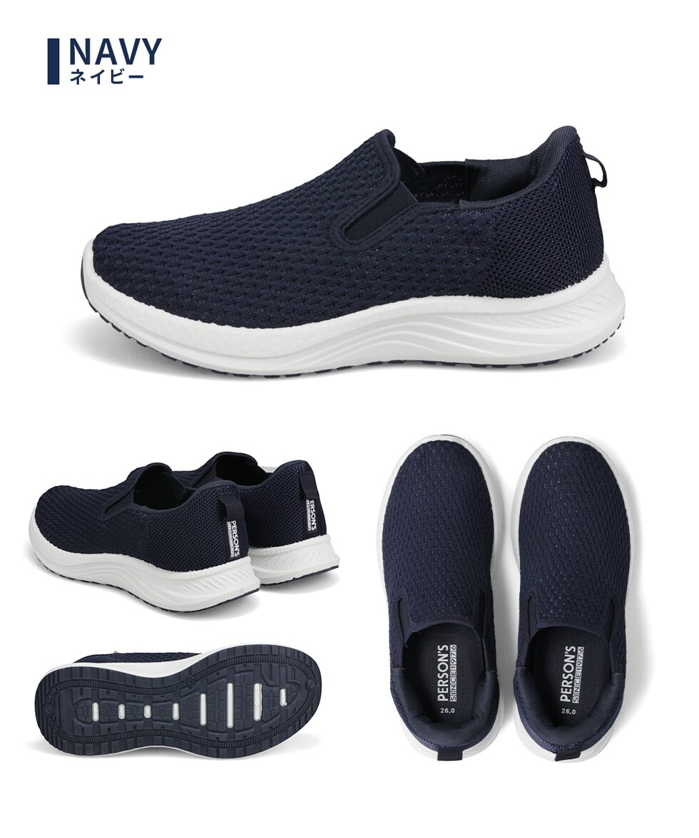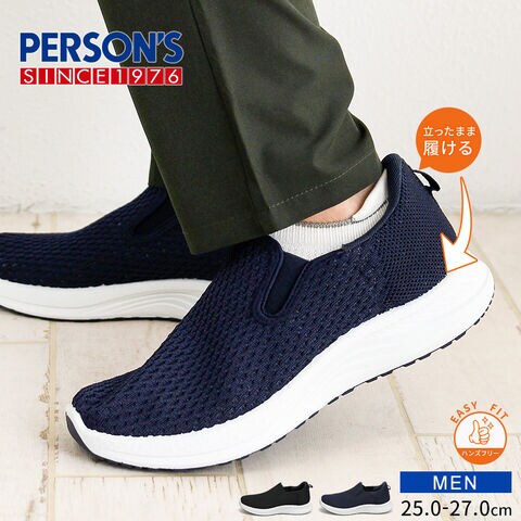 メンズ スリッポン シューズ 黒 ハンズフリー 立ったまま履ける メッシュ ローカット 靴 ブラック ネイビー パーソンズ PERSON'S 1828