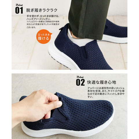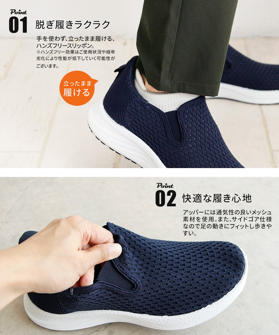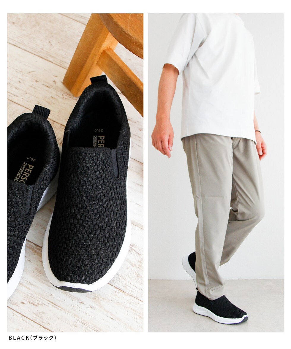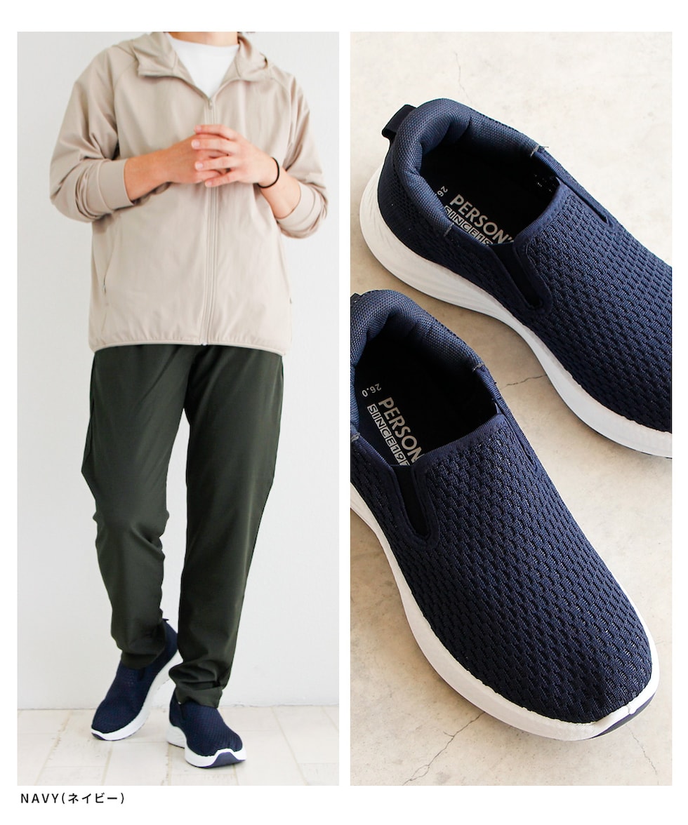 メンズ スリッポン シューズ 黒 ハンズフリー 立ったまま履ける メッシュ ローカット 靴 ブラック ネイビー パーソンズ PERSON'S 1828