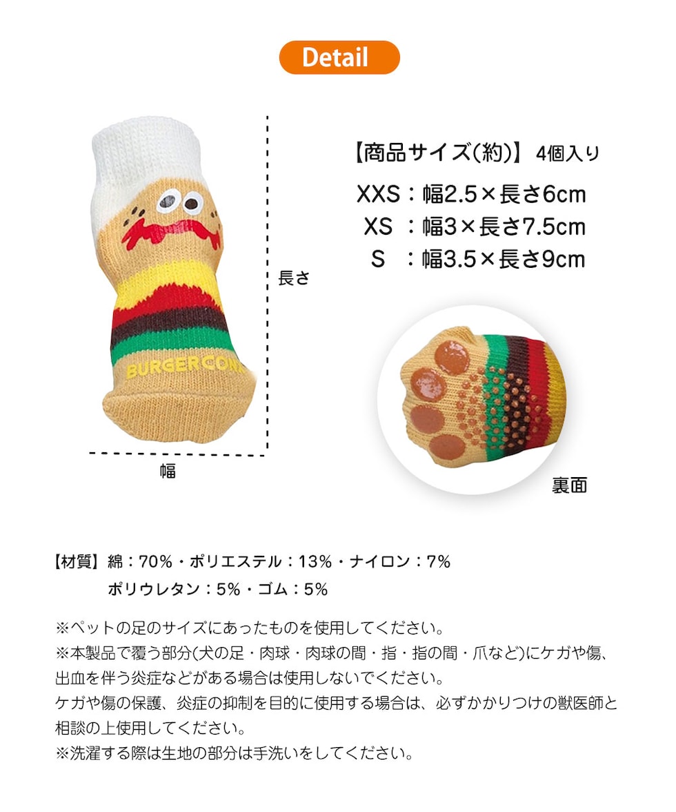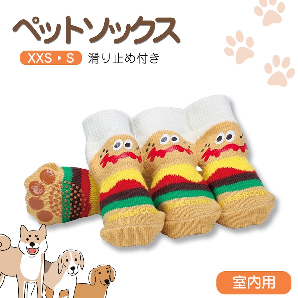 ペット ソックス 靴下 室内用 ケガ 汚れ 防止 滑り止め ブーツ介護用 老犬 4枚入り 男の子 女の子 犬 ワンちゃん 防寒 肉球 足 保護 バーガーコンクス PSOX