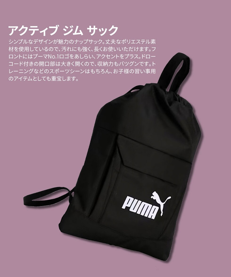 プーマ ナップサック リュックサック バックパック アクティブ ジム サック 手提げ スポーツ 鞄 塾 シンプル ブラック 黒 PUMA 079032