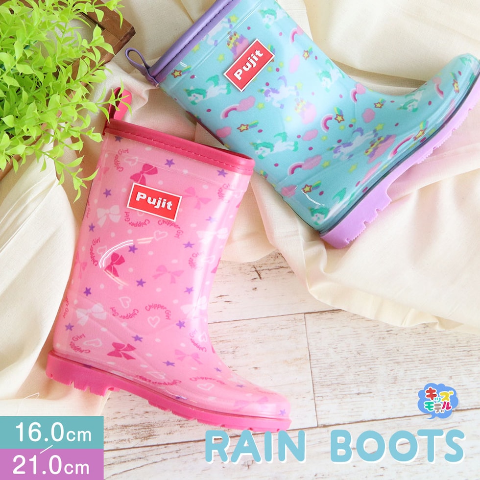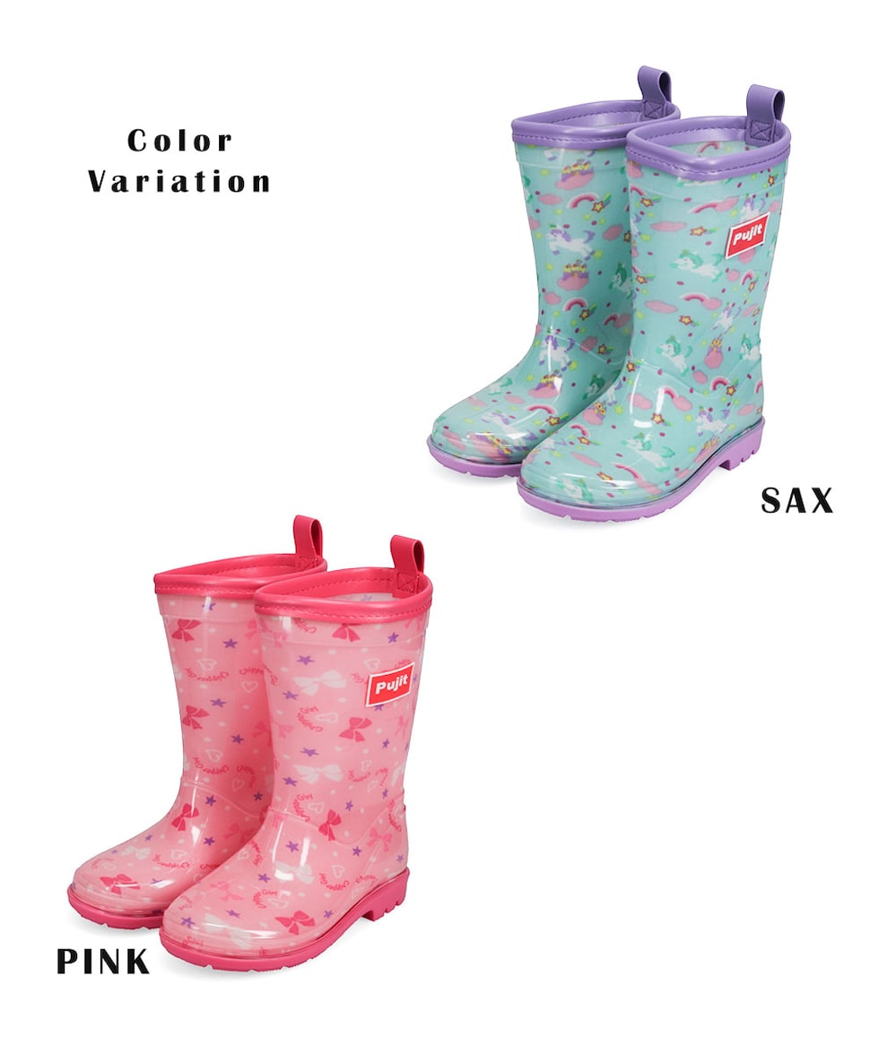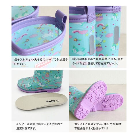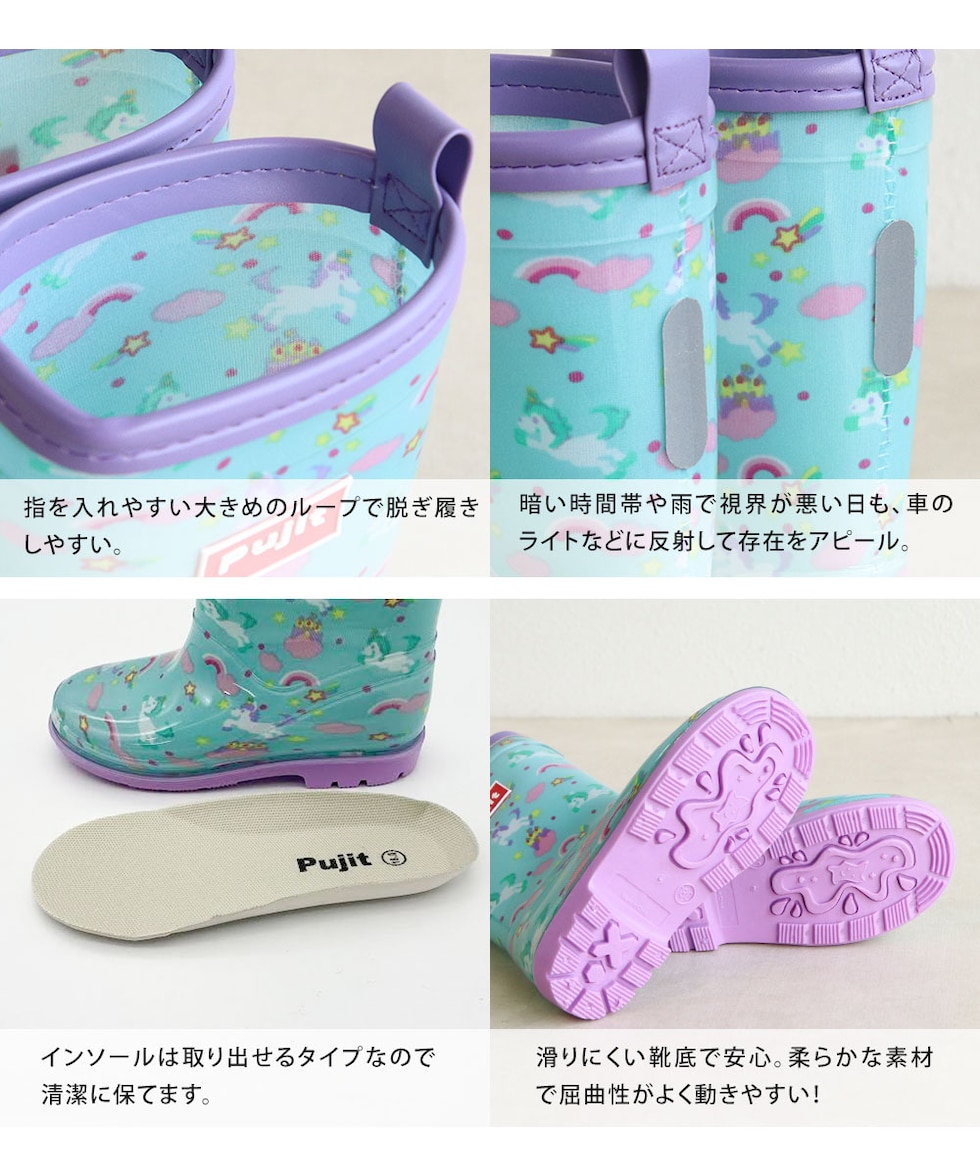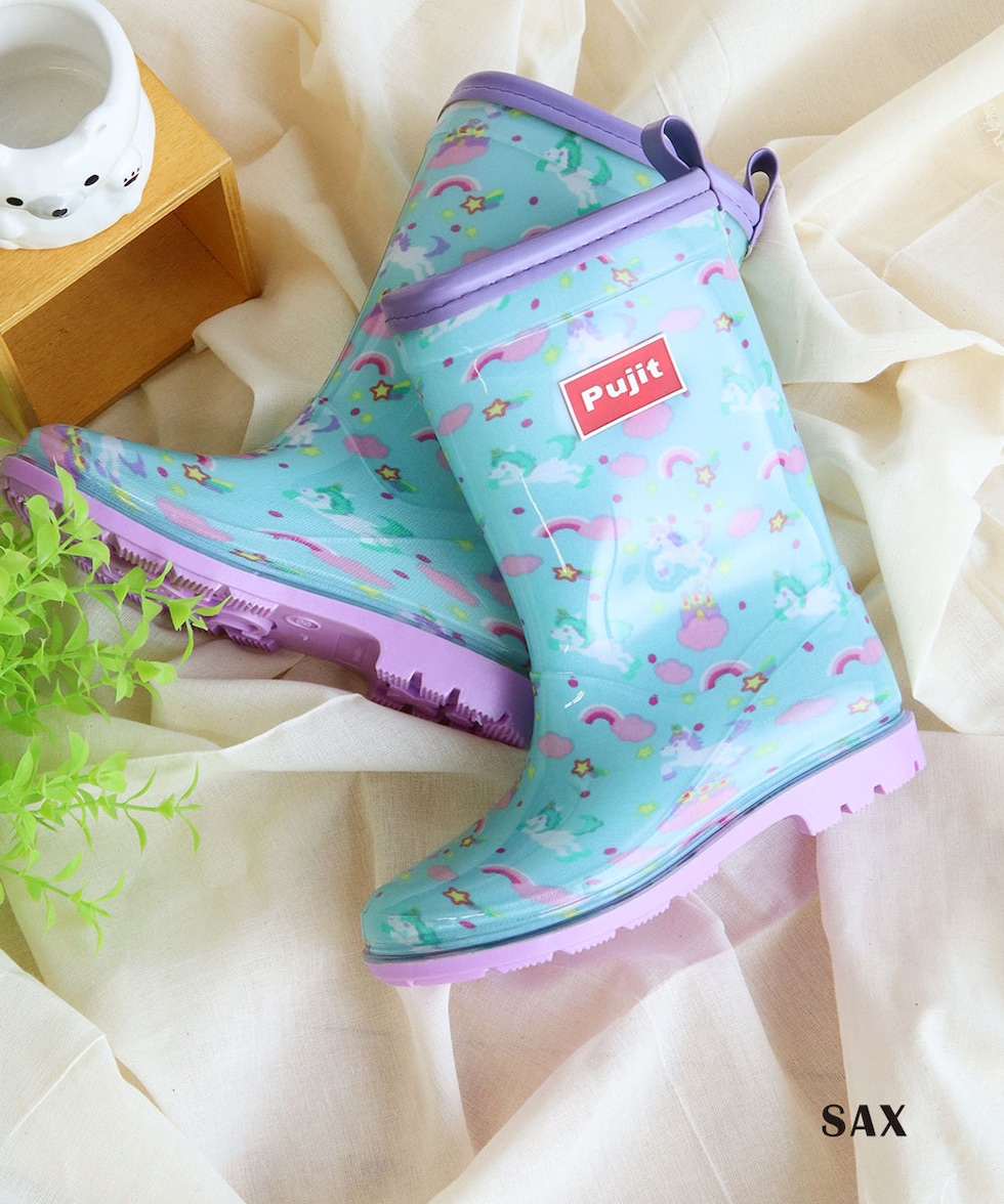 長靴 キッズ 女の子 レインブーツ 反射材 リフレクター ジュニア 子供 シューズ 小学生 通学 通園 リボン ユニコーン ピンク ブルー R-829