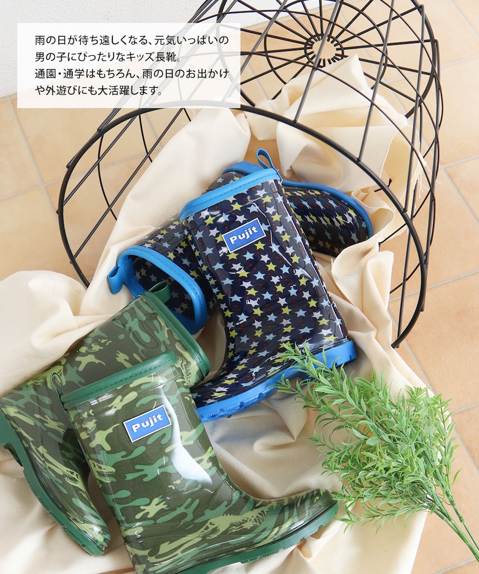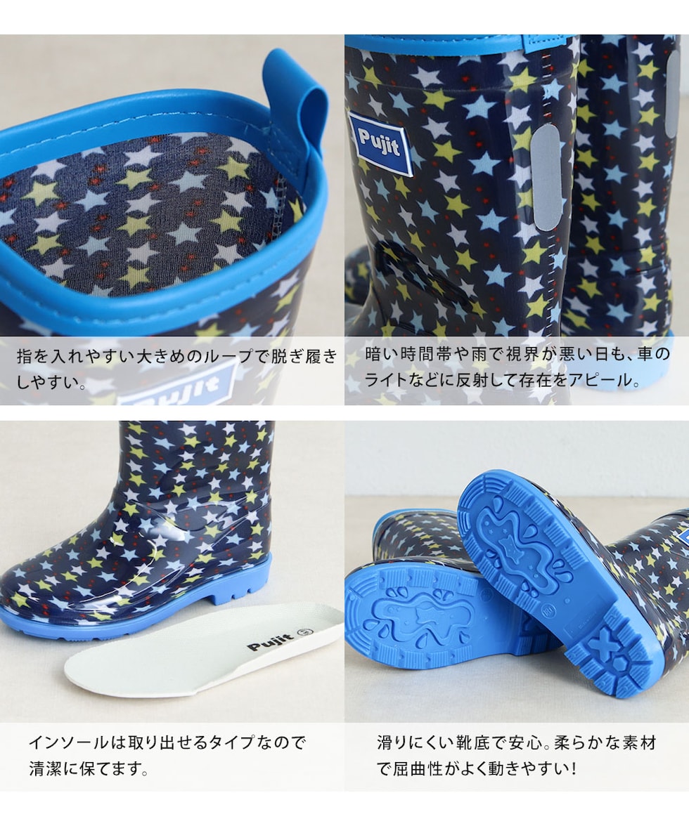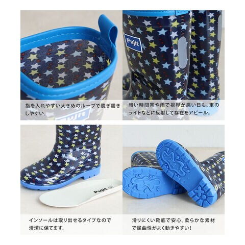 長靴 キッズ 男の子 レインブーツ 反射材 リフレクター ジュニア 子供 シューズ 小学生 通学 通園 恐竜 星柄 ネイビー カーキ R-830のレビュー