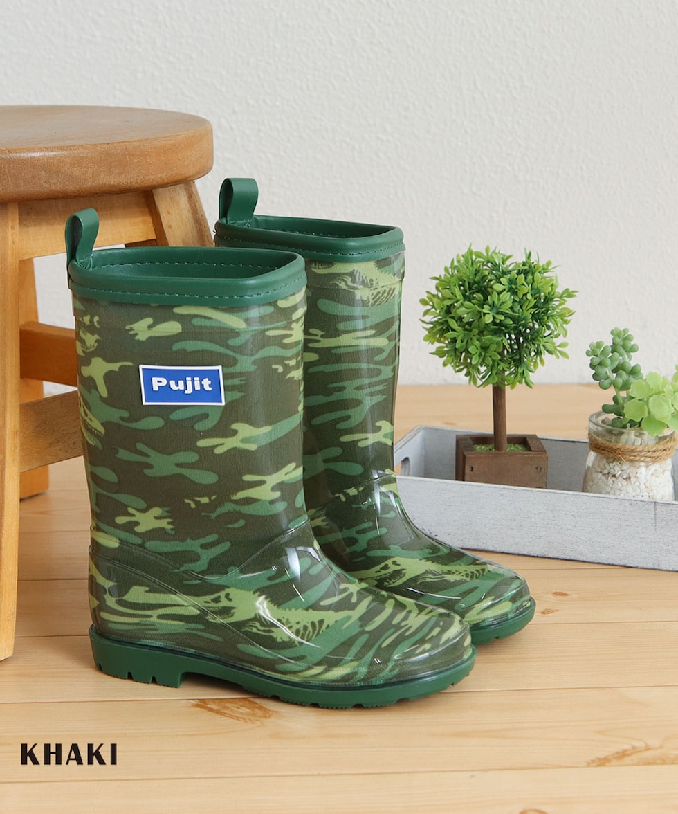 長靴 キッズ 男の子 レインブーツ 反射材 リフレクター ジュニア 子供 シューズ 小学生 通学 通園 恐竜 星柄 ネイビー カーキ R-830