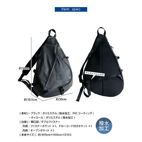 一般的なボディバッグよりも大きく、長財布や500mlのペットボトル、B5サイズのノートやタブレットが収納できる頼もしさ。