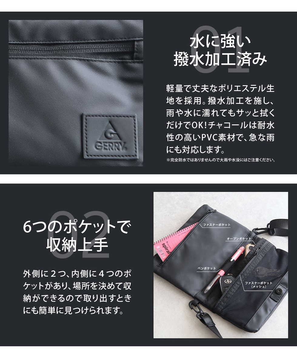 gerry サコッシュ ショルダー バッグ 撥水 2way ポーチ メンズ レディース 斜めがけ 軽量 薄型 小型 ミニ 多機能 便利 ユニセックス 鞄 2183 ジェリー