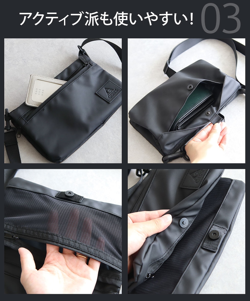 ■撥水&耐久性を備えた機能性に優れたミニサコッシュ
