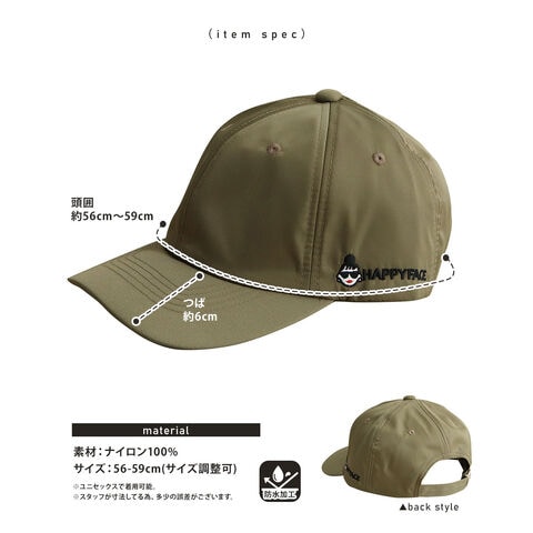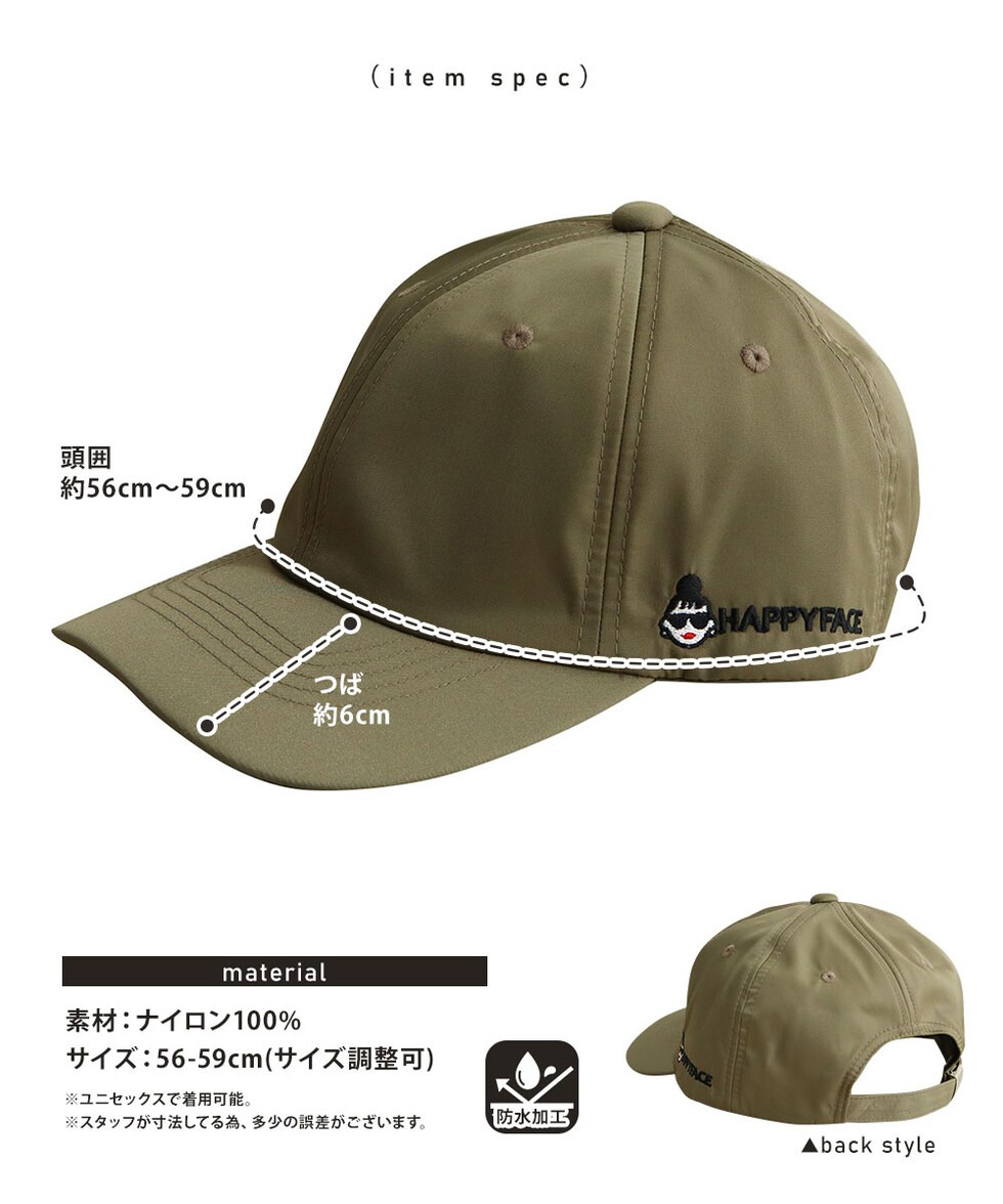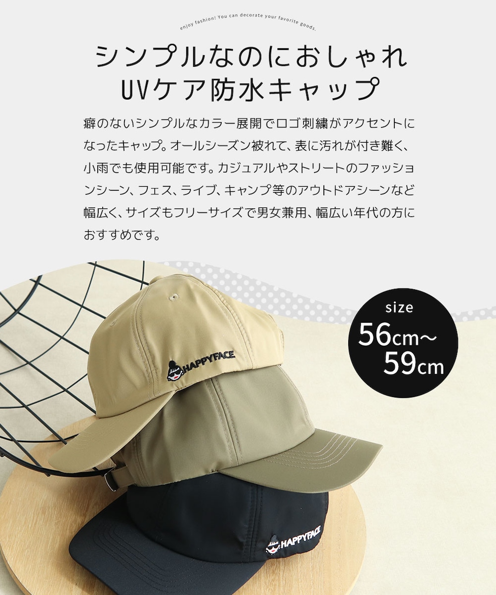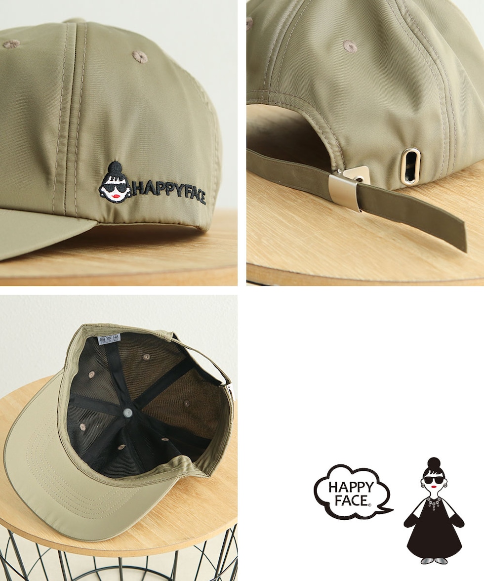 ハッピーフェイス 帽子 キャップ レディース 防水 おしゃれ ナイロン uvカット HAPPYFACE 黒 ブラック カーキ ベージュ 1030142