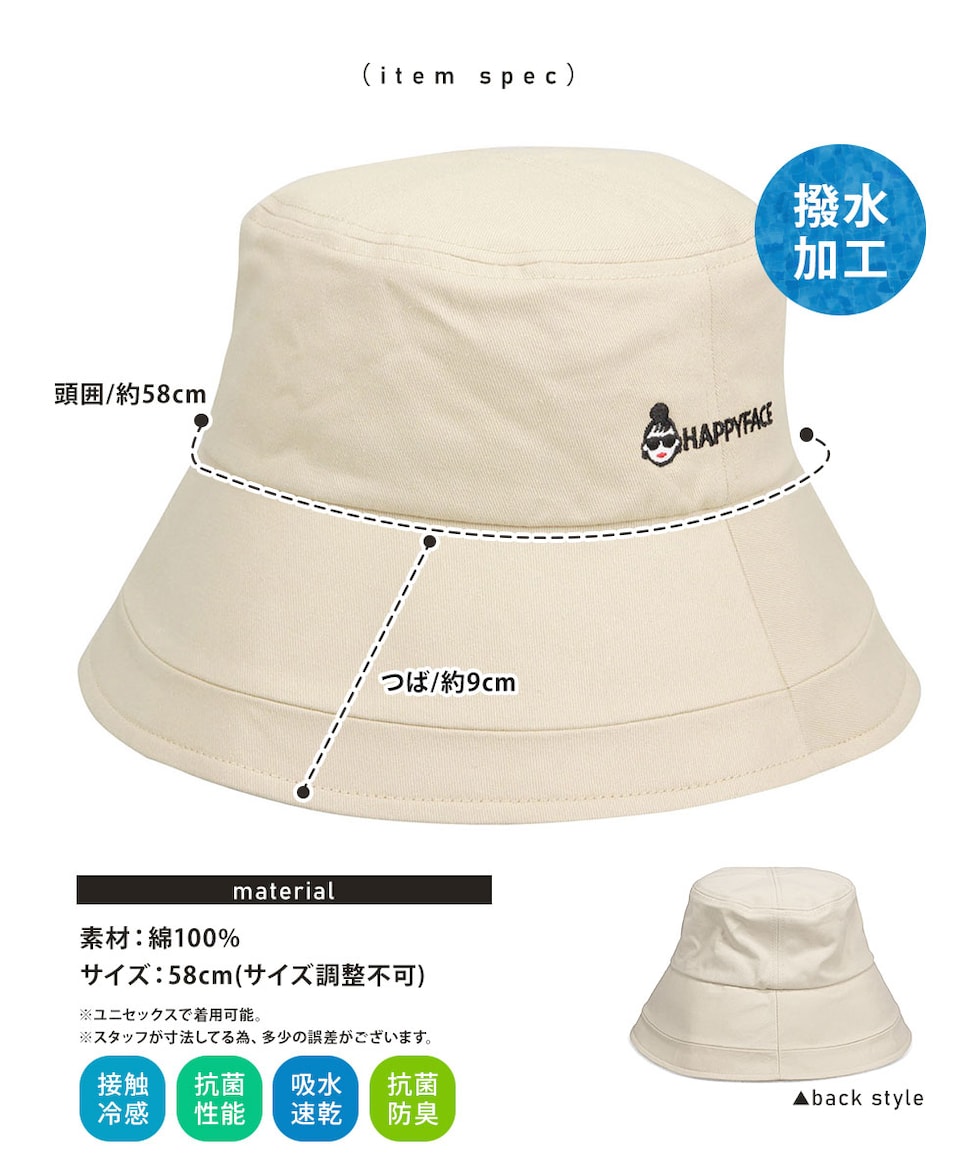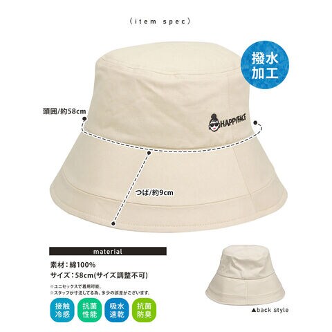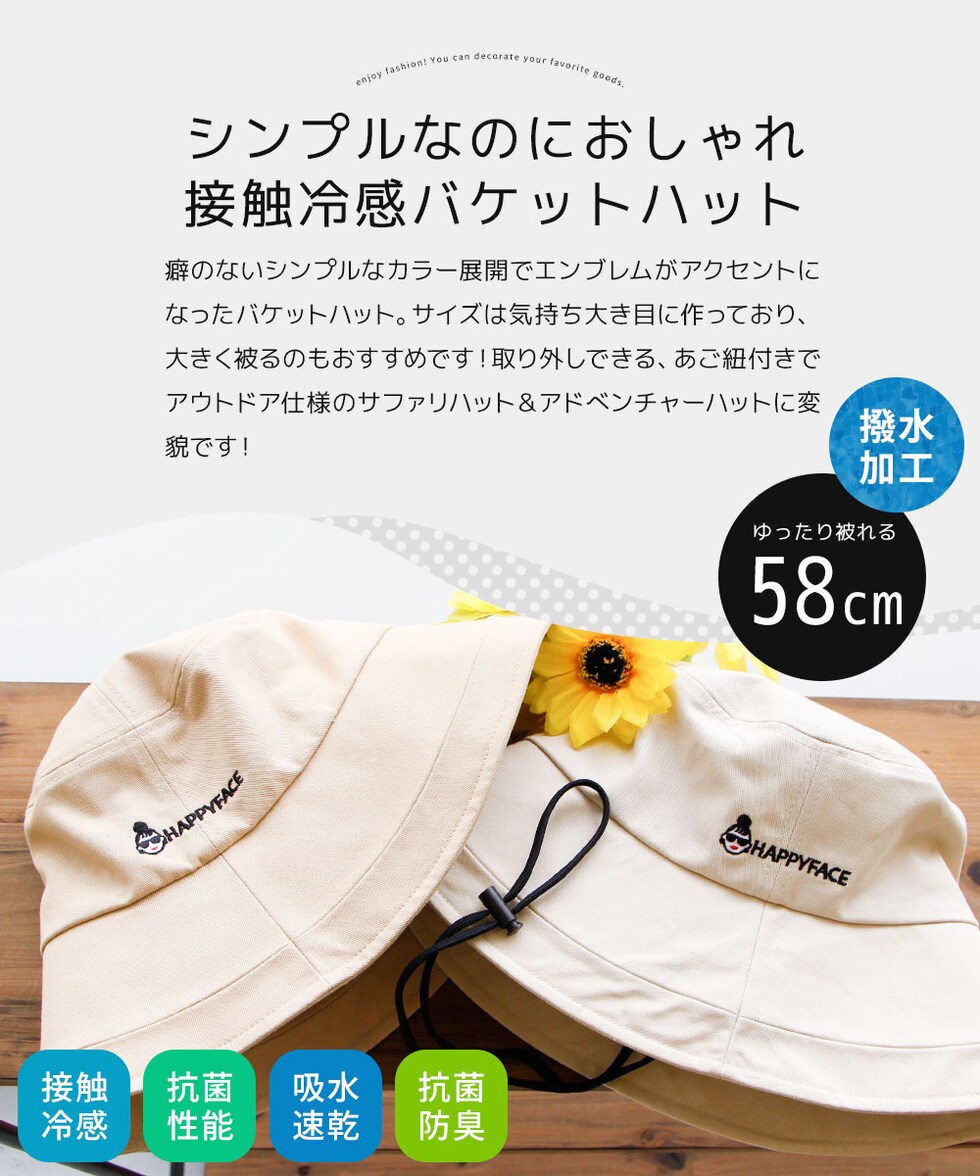 ハッピーフェイス 帽子 バケット ハット レディース おしゃれ 接触冷感 遮光 黒 ブラック ベージュ ホワイト HAPPYFACE 1030151