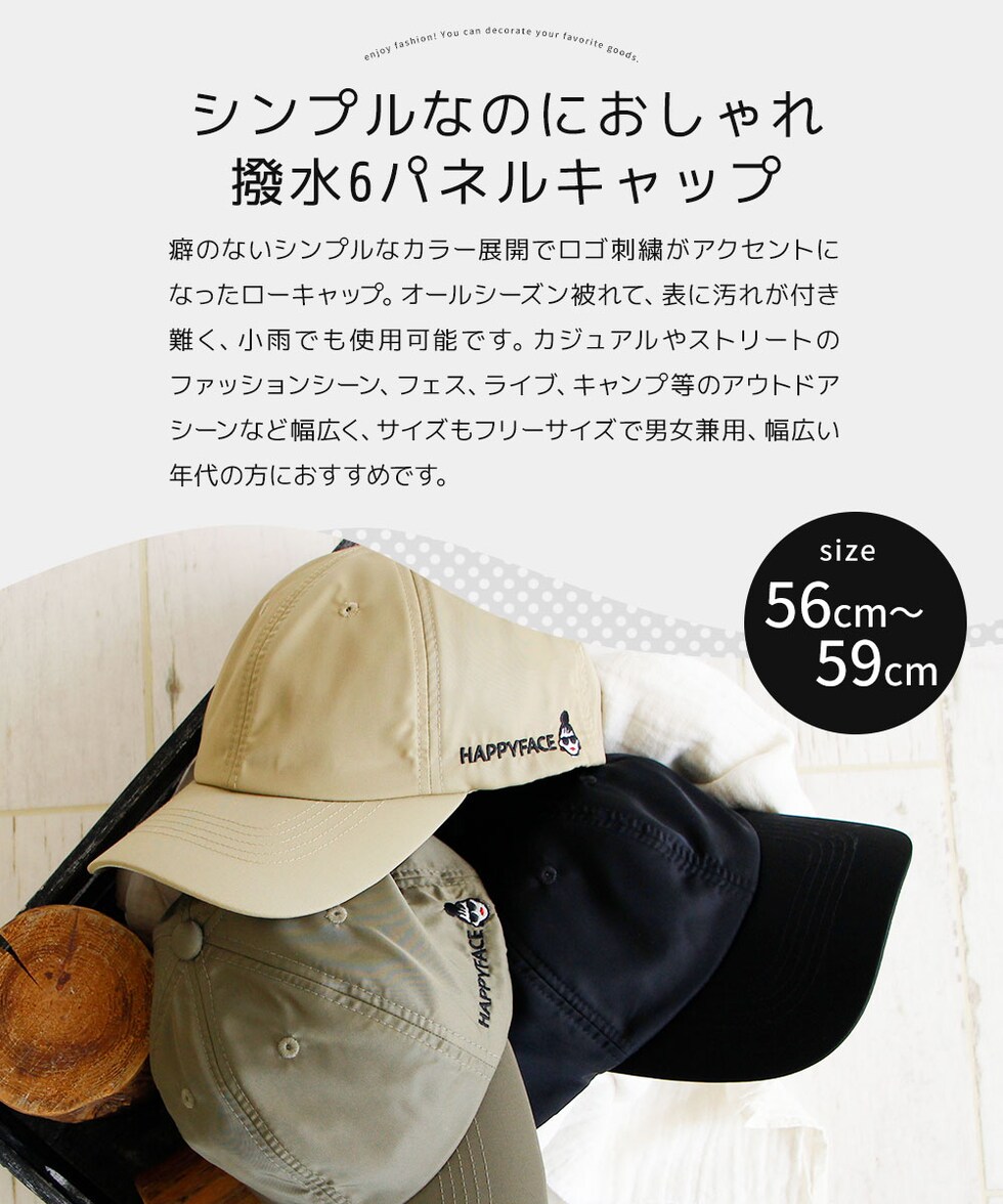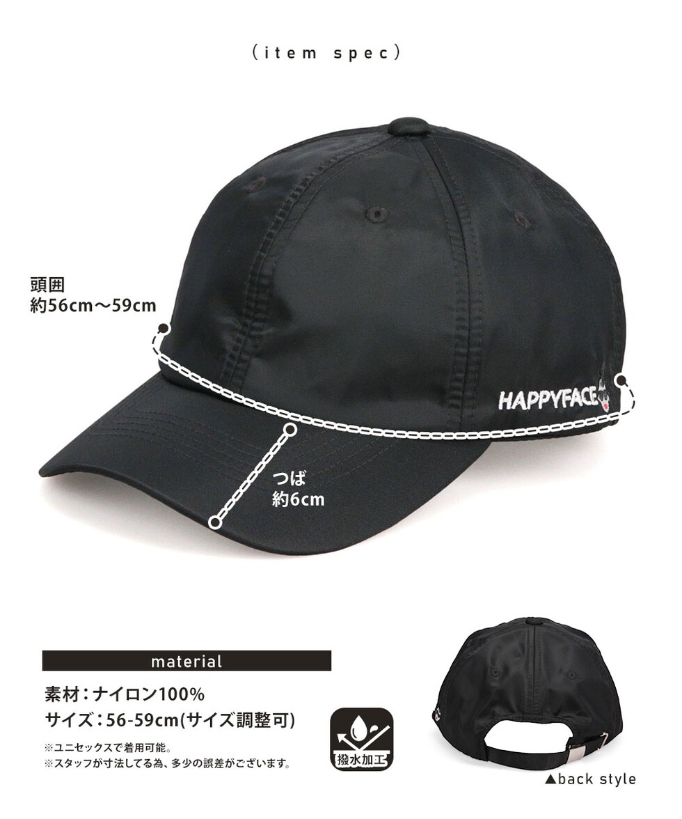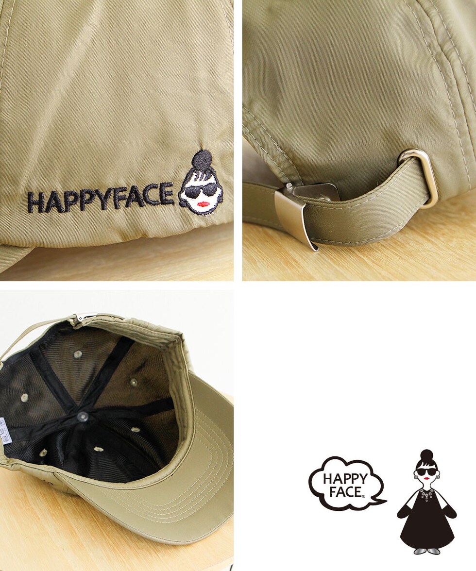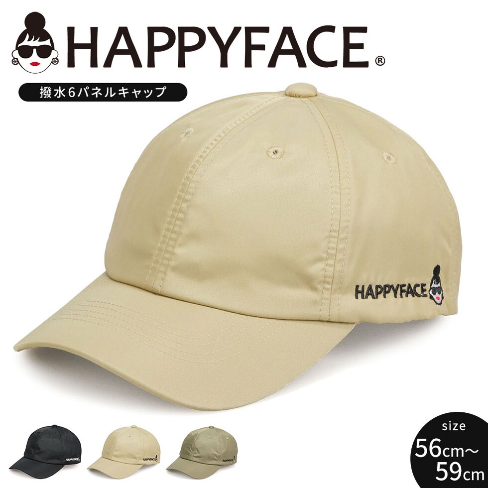 ハッピーフェイス 帽子 キャップ レディース おしゃれ 撥水 ナイロン uvカット 黒 ブラック カーキ ベージュ HAPPYFACE 1030222