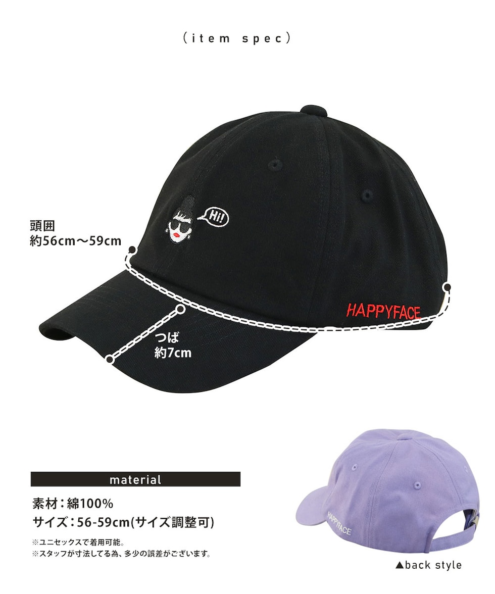 ハッピーフェイス 帽子 キャップ レディース おしゃれ HAPPYFACE 黒 ブラック 白 ホワイト グレー パープル ブラウン 1032512