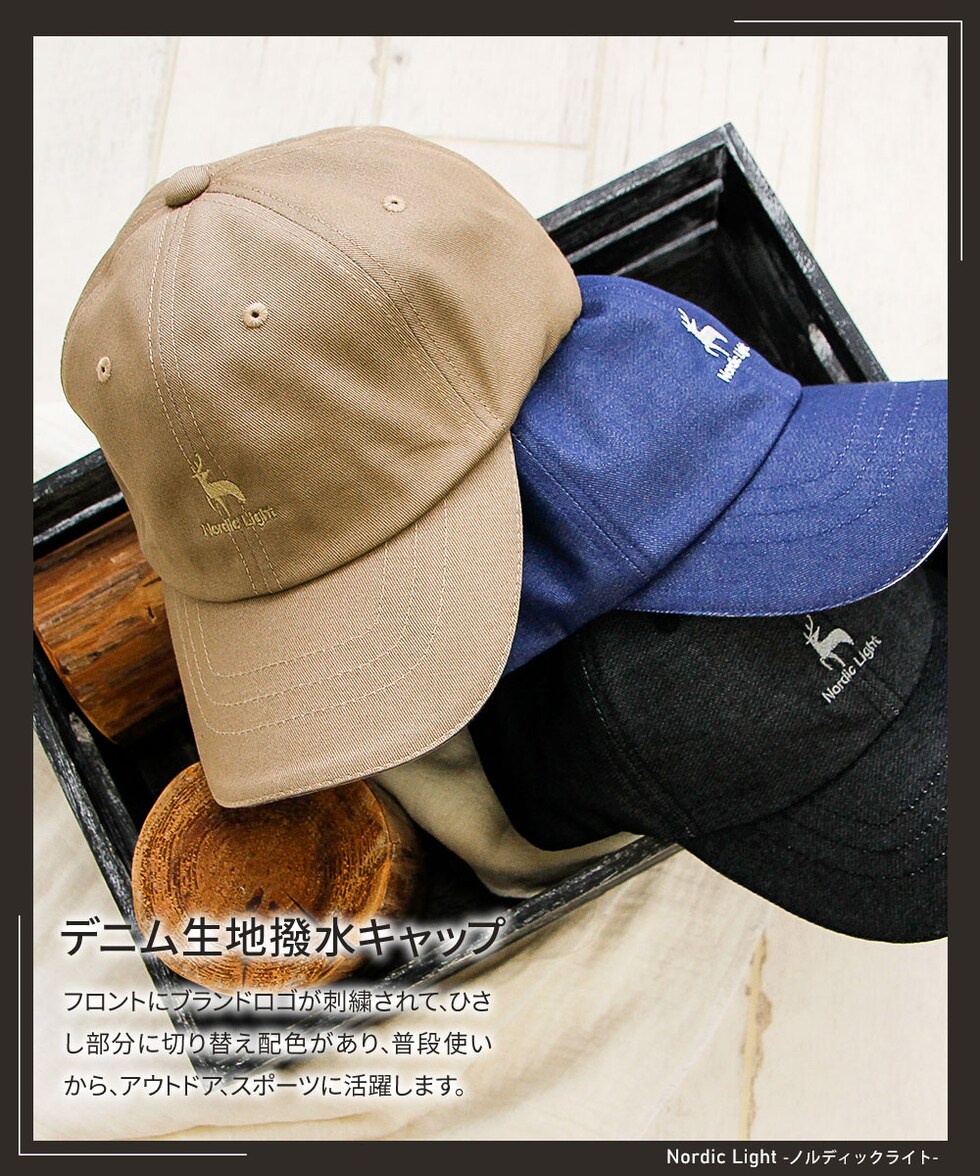 ノルディックライト 帽子 デニム キャップ メンズ ブランド ロゴ 撥水 おしゃれ レディース 黒 ブラック ベージュ Nordic Light