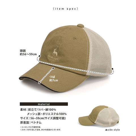 [素材]:前立て/ツバ・綿100%|メッシュ部・ポリエステル100%
